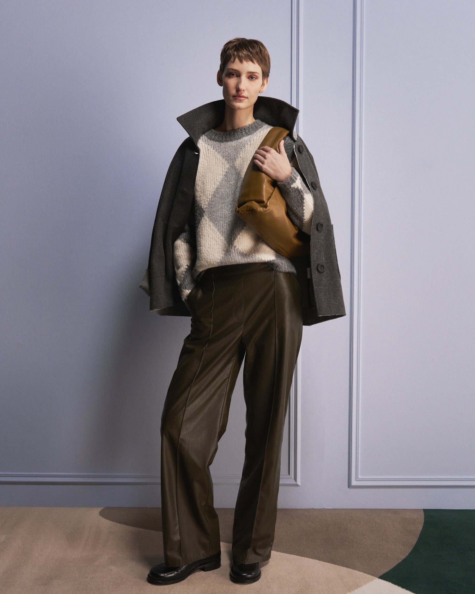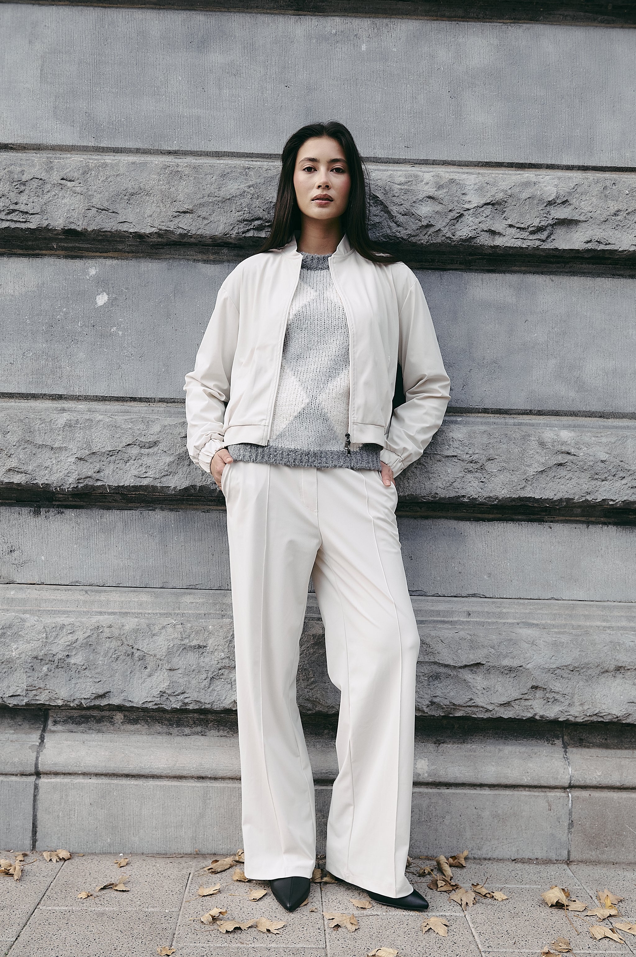 I pantaloni Thera offrono una silhouette fluida e raffinata, perfetta per un’eleganza disinvolta e confortevole. Realizzati in jersey tecnico spazzolato, hanno una caduta morbida, pieghe frontali eleganti e gamba larga. Si abbinano perfettamente sia a blazer che a maglieria per un look da giorno a sera di grande classe.