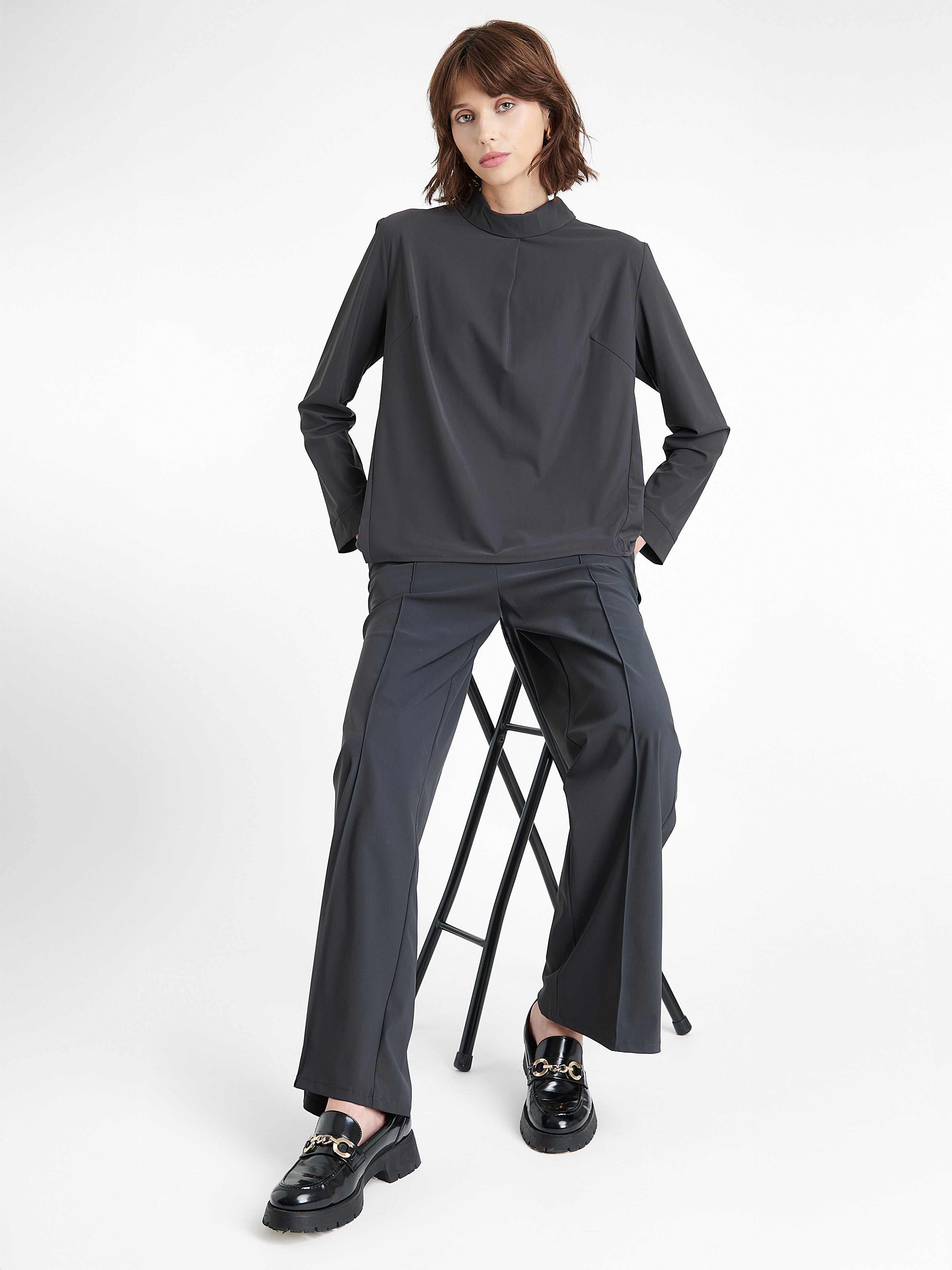 Terry Top Technical Jersey di Jane Lushka unisce eleganza rilassata e praticità contemporanea. Realizzato in Italia in tessuto tecnico elasticizzato e morbido, cade con leggerezza mantenendo un aspetto raffinato. Lo scollo arricciato aggiunge un tocco femminile, mentre la vestibilità morbida garantisce comfort per tutto il giorno. Perfetto da abbinare a pantaloni sartoriali o jeans.