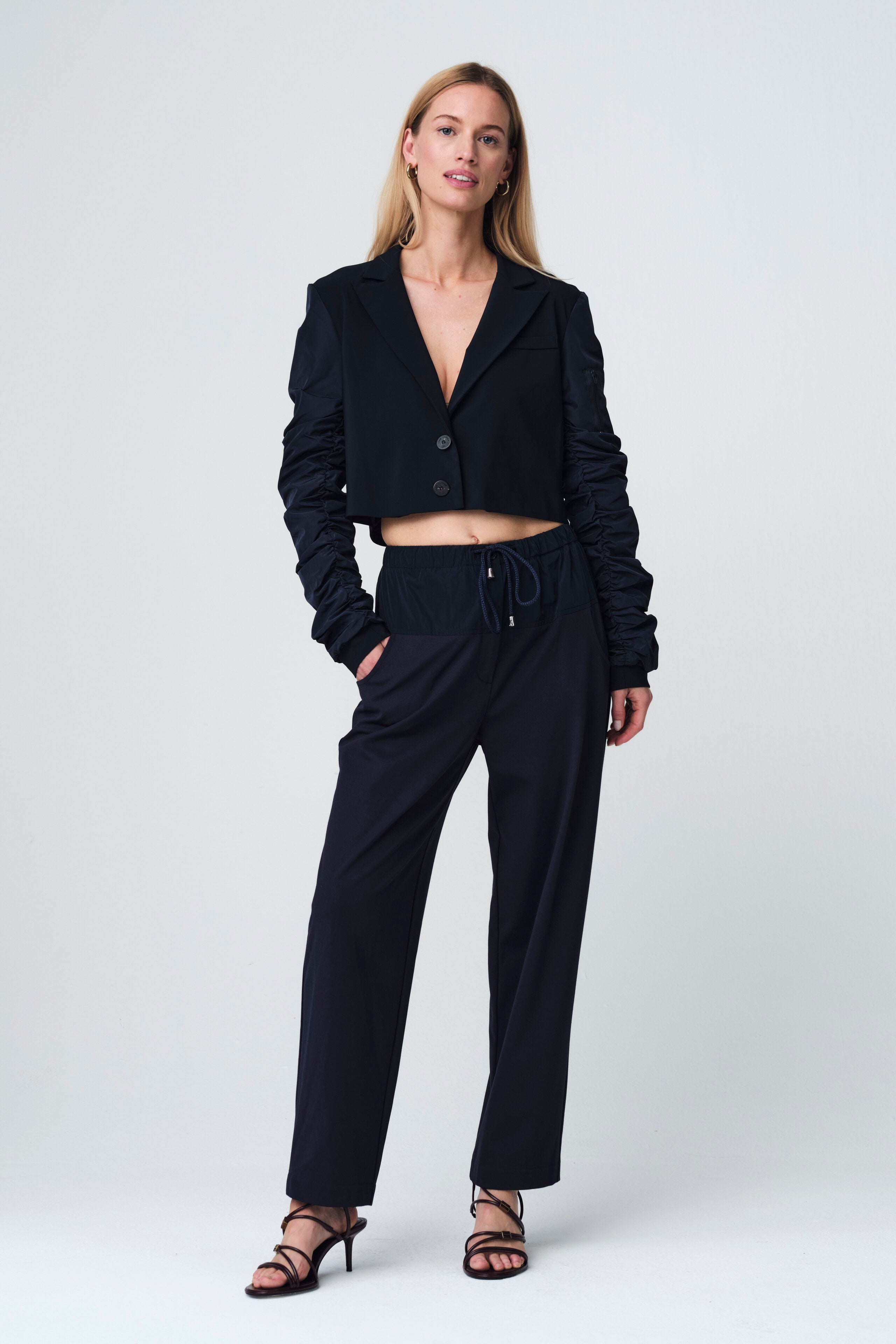 La giacca Torino Technical Jersey di Jane Lushka unisce eleganza e comfort in uno stile contemporaneo. Realizzata in Italia con il pregiato tessuto technical jersey del brand, offre una sensazione leggera, elastica e confortevole. Il taglio corto e la linea sartoriale sono valorizzati dalle maniche arricciate e dallo scollo profondo a V. Perfetta da abbinare a pantaloni coordinati o gonne a vita alta per un look raffinato.