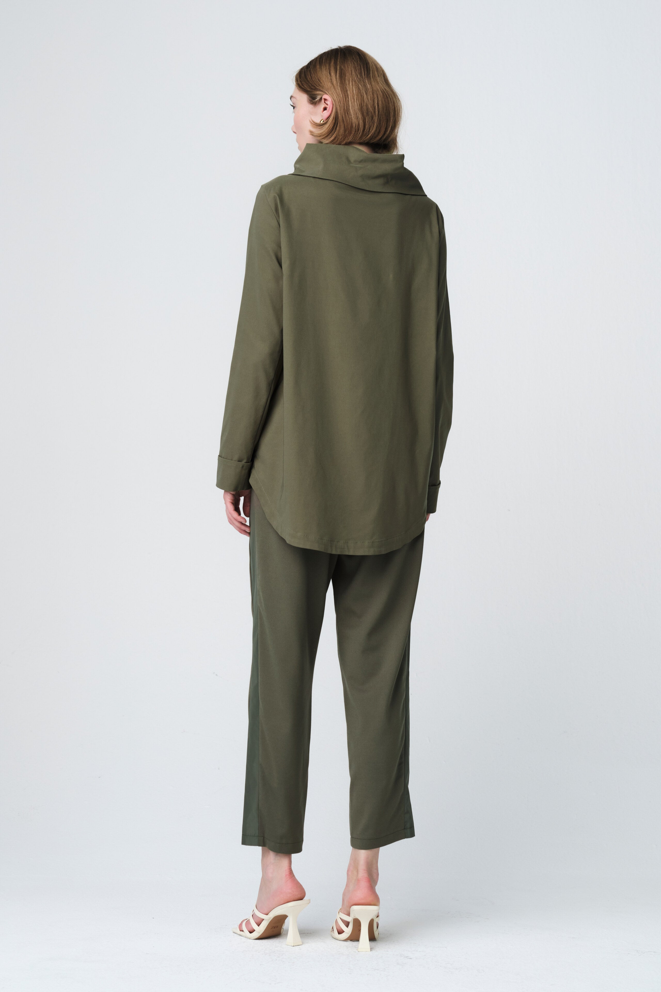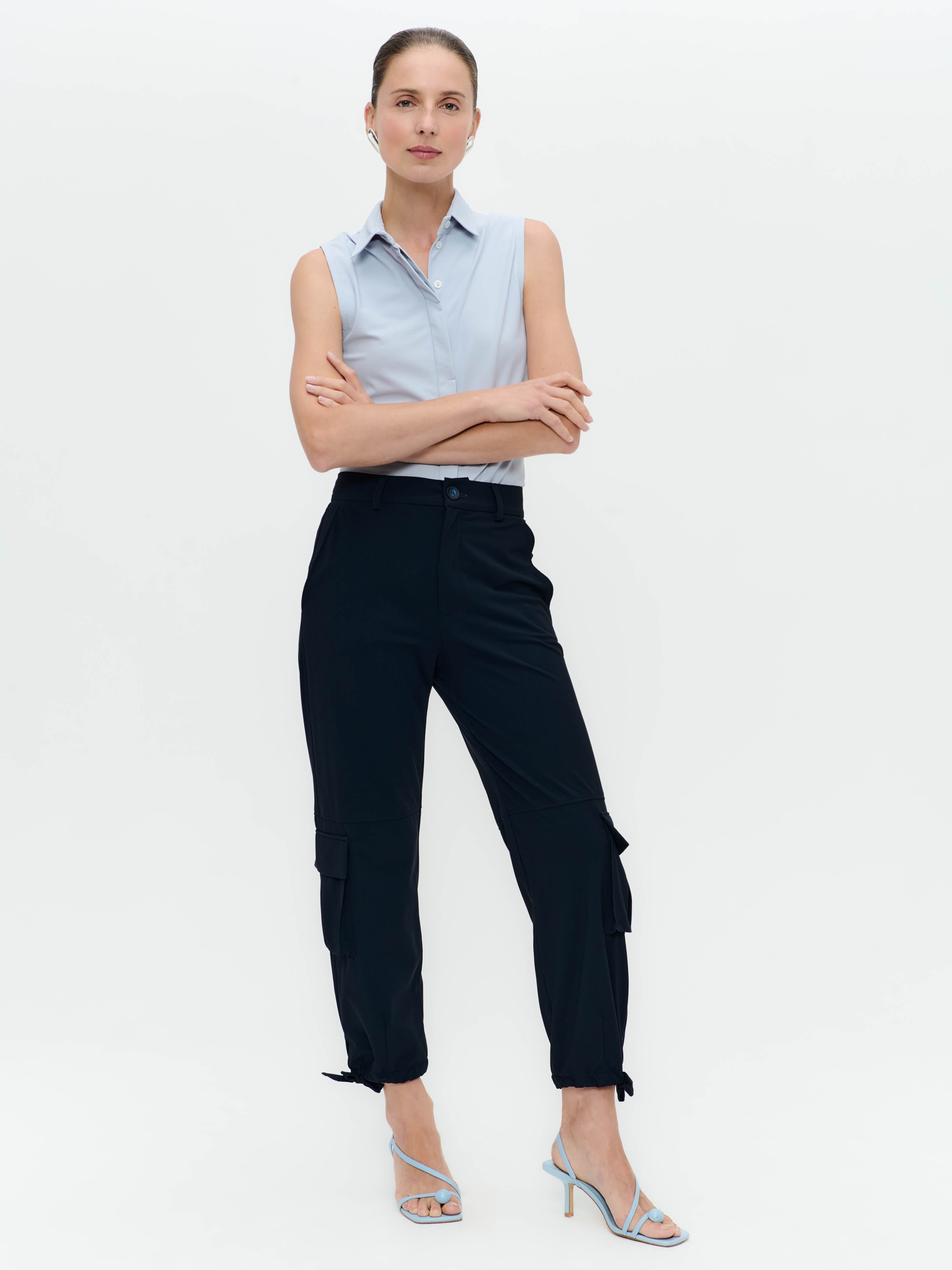 Pantaloni di tendenza: Elevate il vostro stile con i nostri pantaloni cargo in poliviscosa, caratterizzati da una linea elegante e da una struttura lucida per un tocco di raffinatezza.