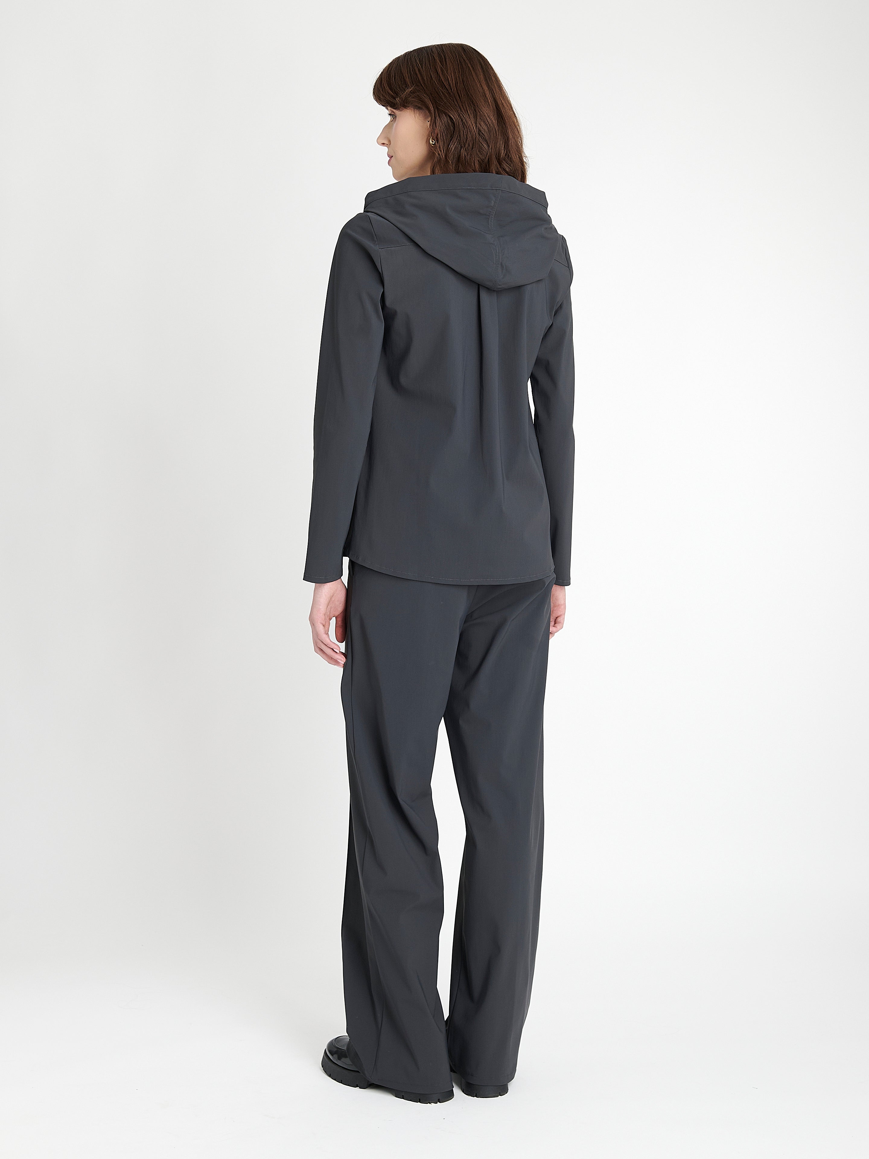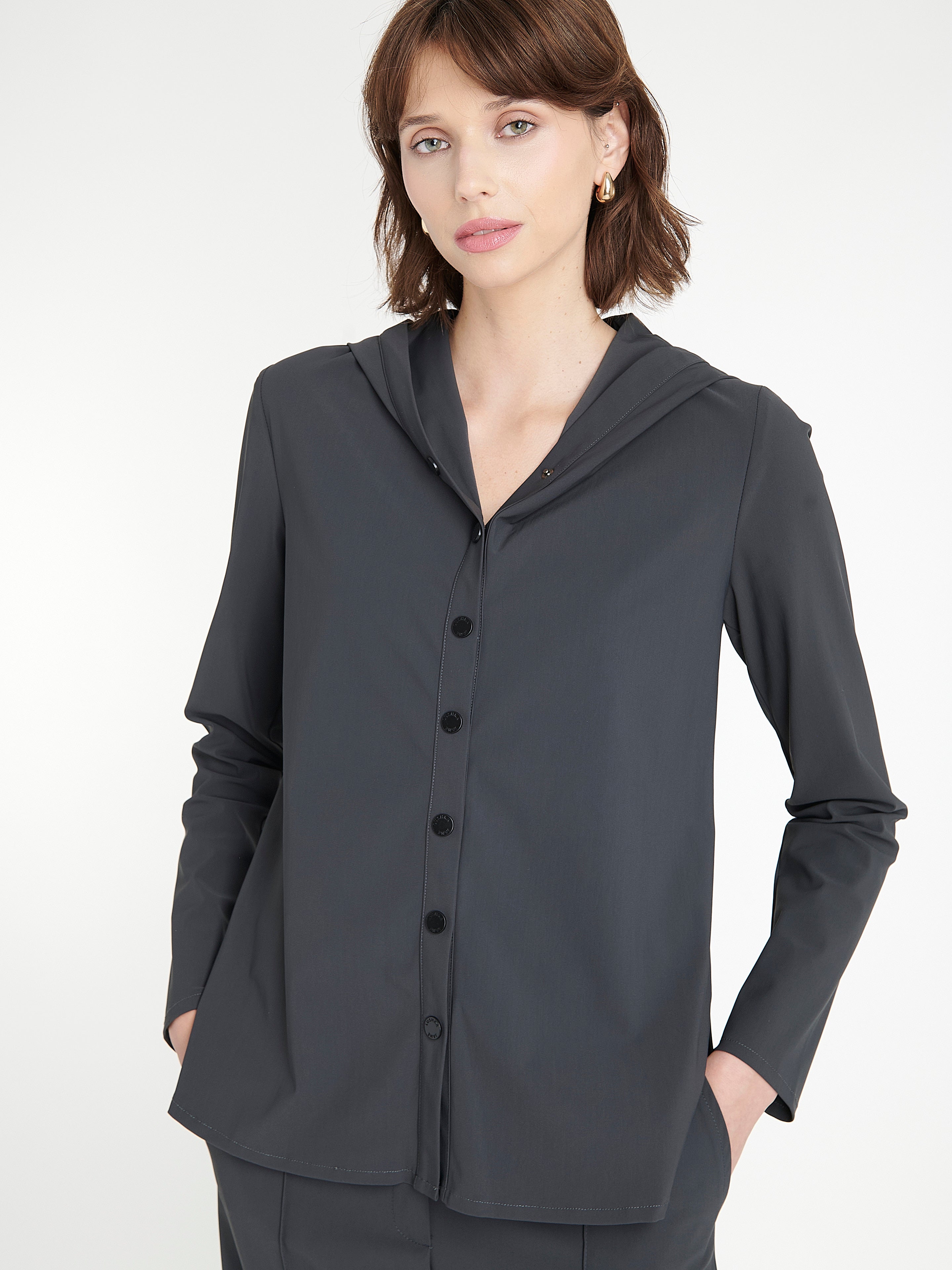 Progettata per una comodità sofisticata, la camicetta Veronica in jersey tecnico combina struttura e morbidezza in una silhouette pulita. Caratterizzata da un design moderno con collo e dettaglio cappuccio drappeggiato, questa camicetta è realizzata in jersey tecnico liscio per un look raffinato e una vestibilità confortevole. Si chiude con bottoni tono su tono e include tasche laterali discrete — un capo minimalista ma funzionale per uno stile versatile.
