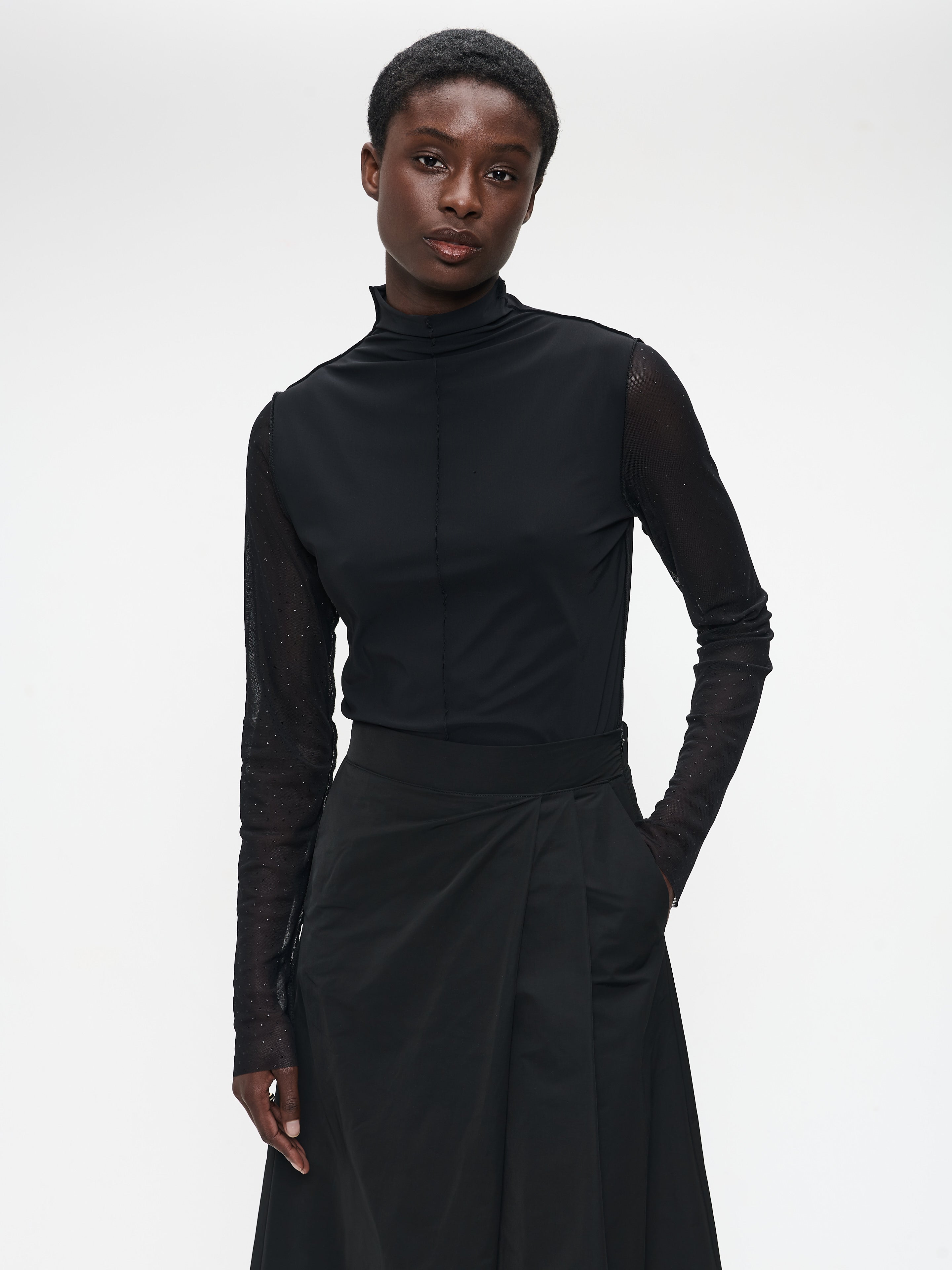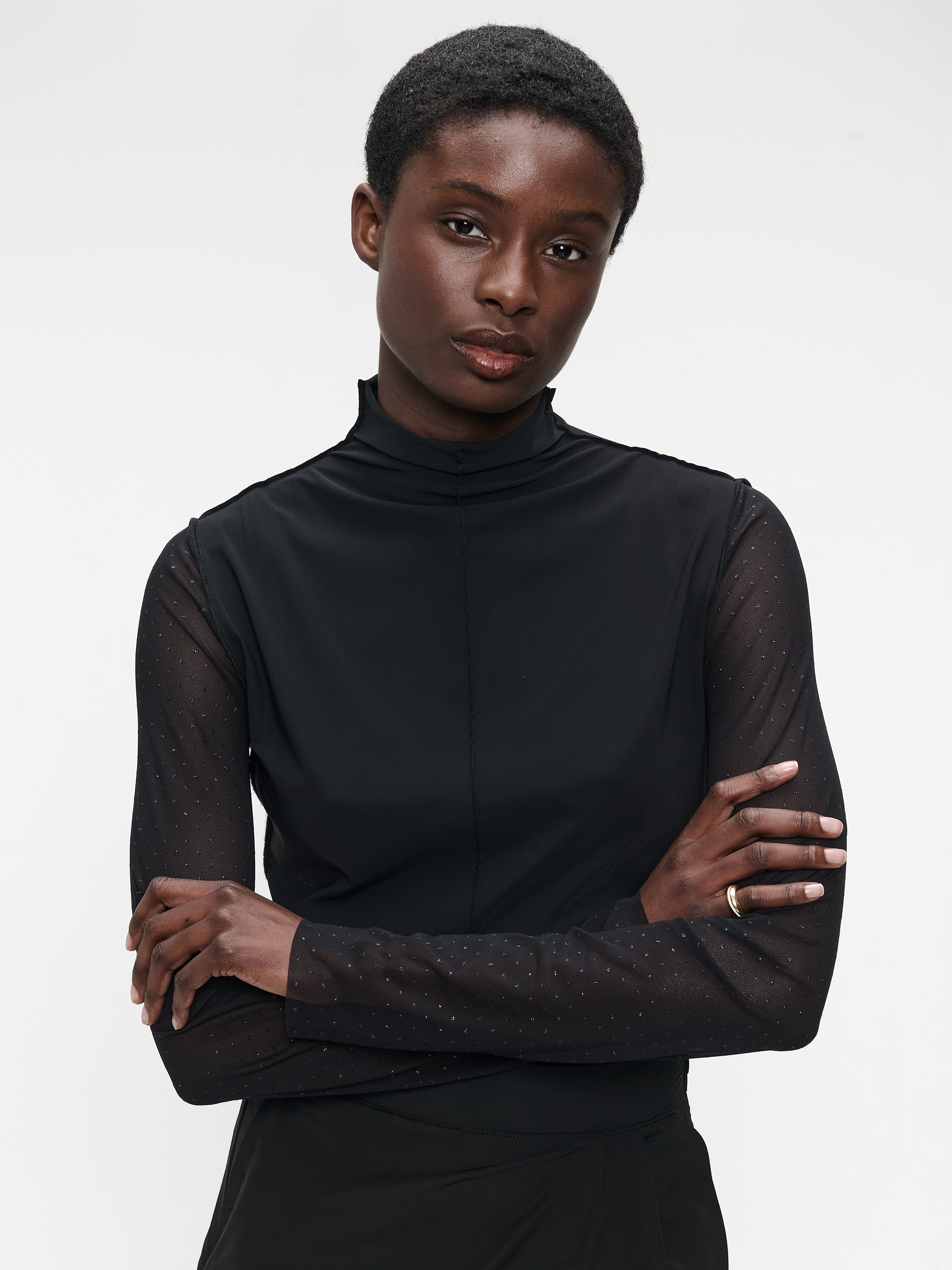 • Manches longues semi-transparentes avec un subtil effet pailleté