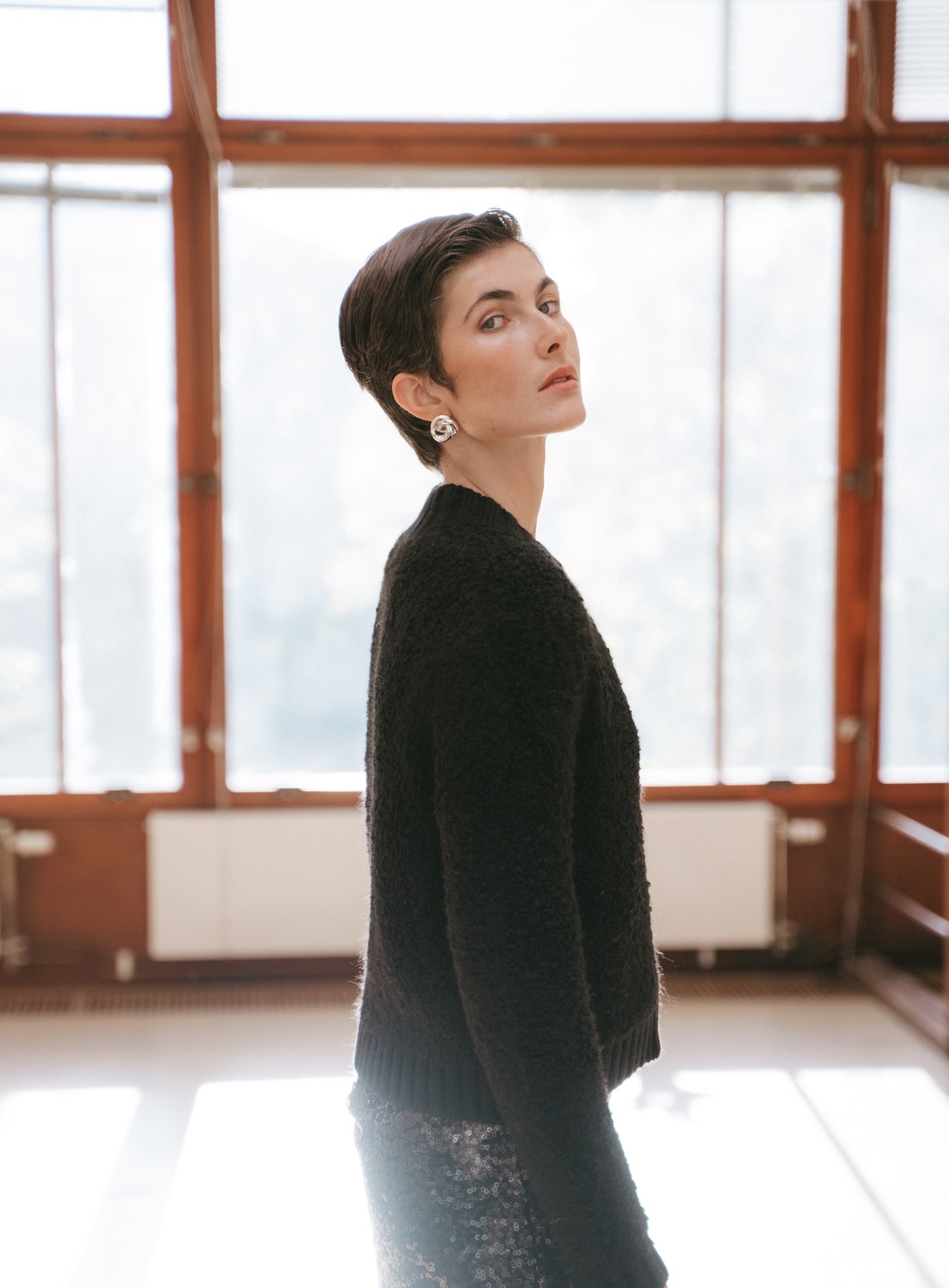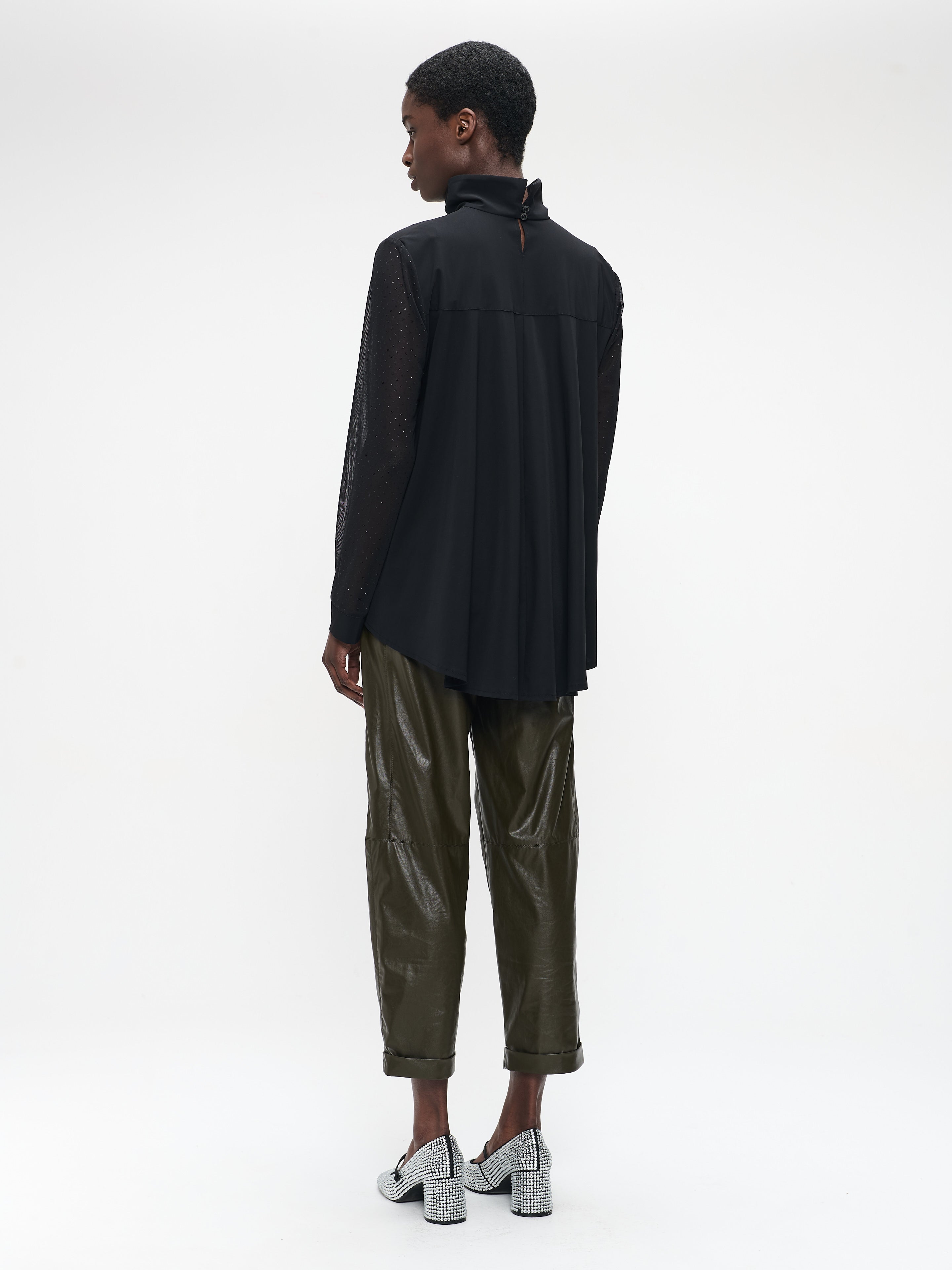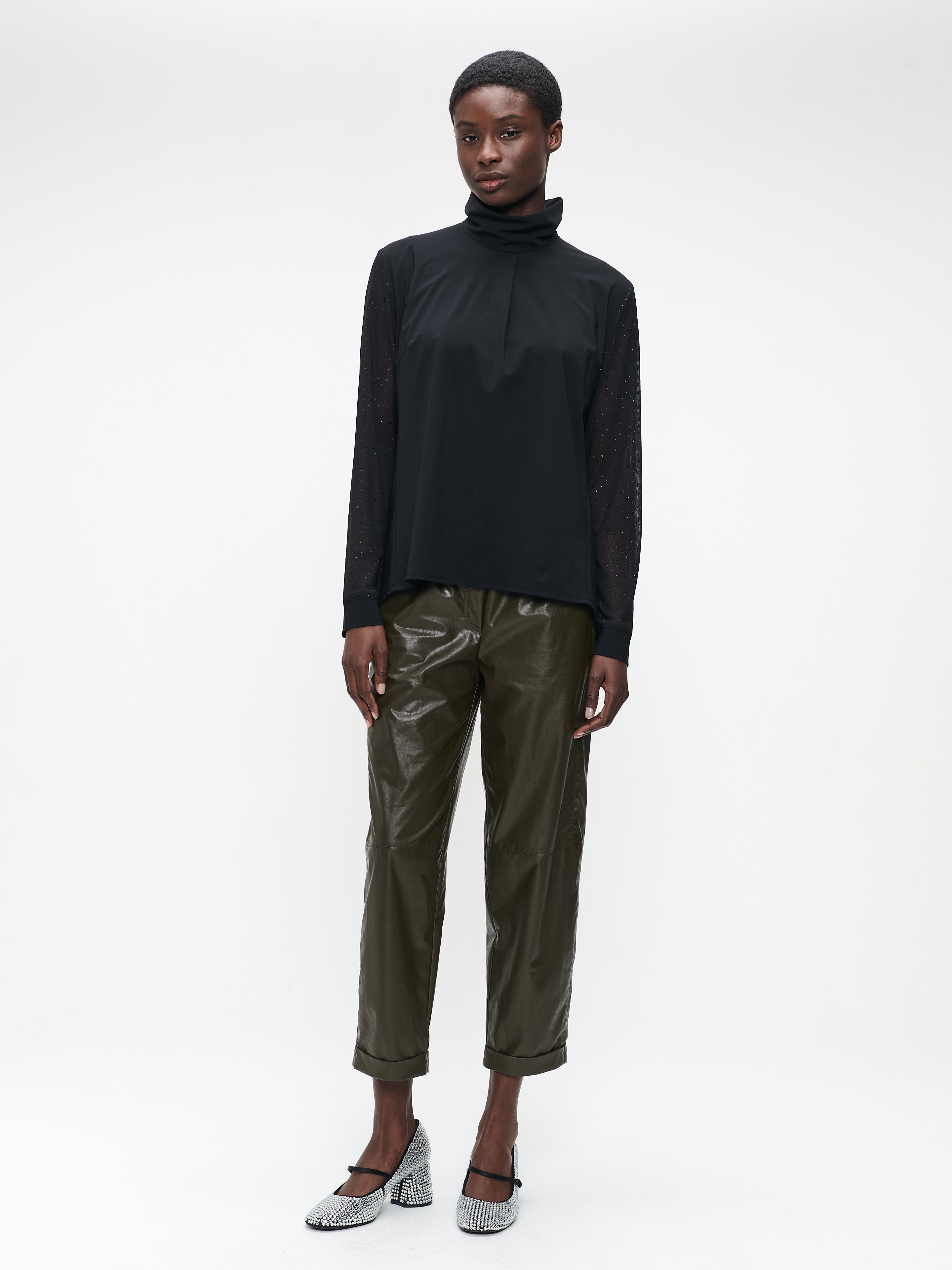 Raffinato e femminile, il top Dolche Vita eleva il tuo look quotidiano con una sofisticazione senza sforzo. Realizzato in jersey tecnico di alta qualità, questo top a maniche lunghe presenta un morbido collo alto drappeggiato che aggiunge un tocco contemporaneo. La silhouette leggermente boxy garantisce comfort mantenendo un’estetica moderna. Ideale da abbinare a pantaloni sartoriali o capi casual.