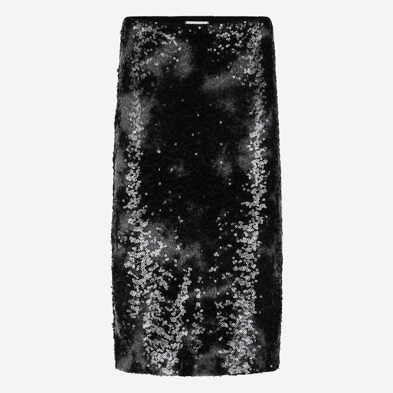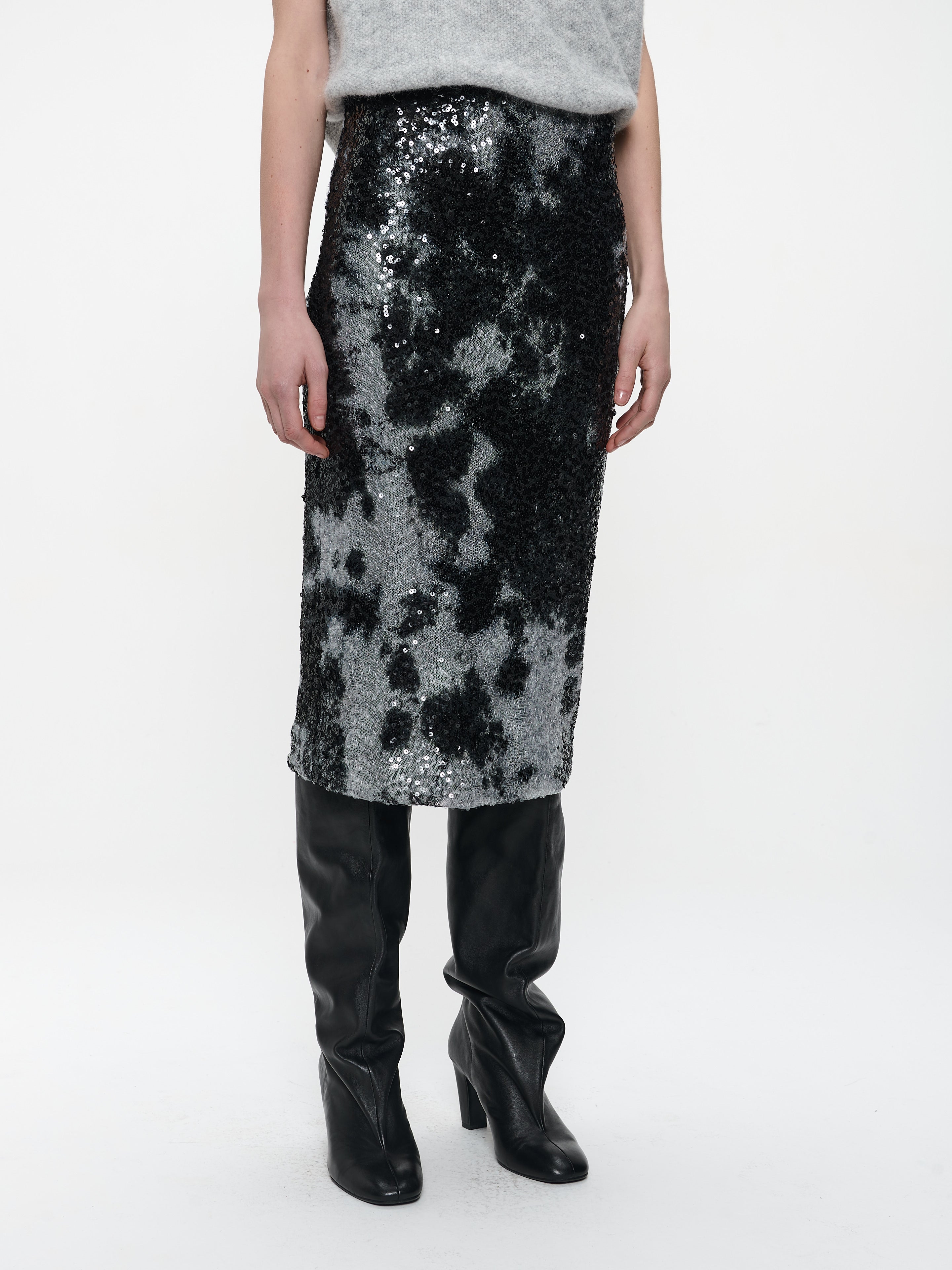 Brilla questa stagione con la gonna di paillettes Dionisia – un’aggiunta audace e scintillante al tuo guardaroba AW25. Ricoperta di paillettes nere e argento, questa gonna a matita dona immediatamente glamour mantenendo il comfort grazie alla morbida fodera in viscosa. Progettata per aderire elegantemente ai fianchi e cadere appena sotto il ginocchio, è perfetta per serate festive o occasioni eleganti.