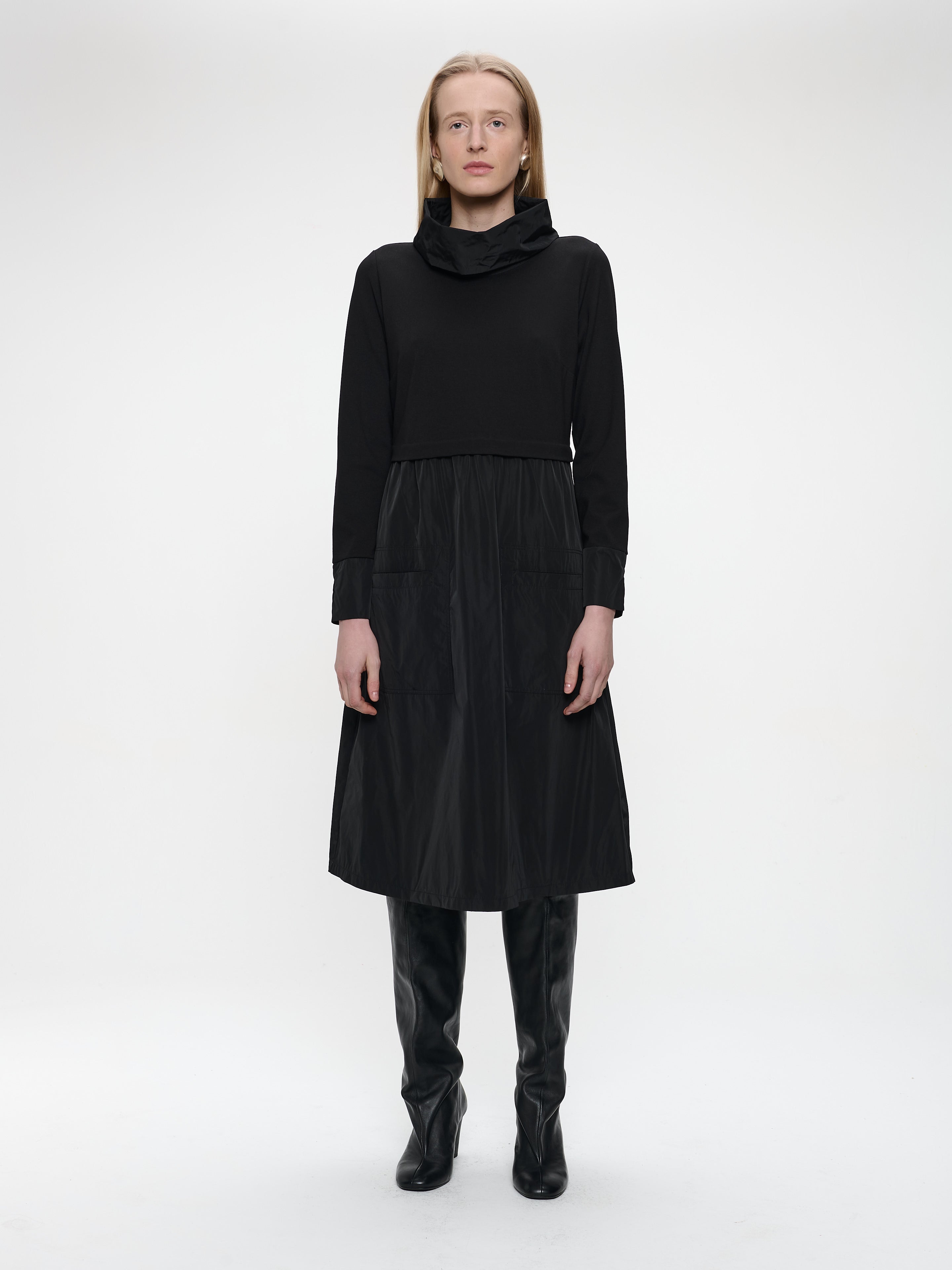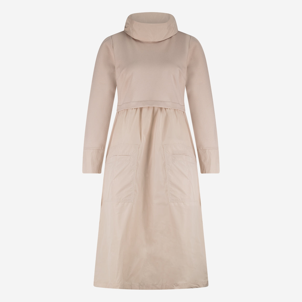 Questo elegante abito Mix Cotton Taffeta 176L unisce il comfort di viscosa e poliammide alla raffinatezza del taffetà di cotone. Presenta un design unico a due texture, con un top aderente che si trasforma in una gonna elegante e pratica con tasche laterali profonde. Le sue tonalità neutre e la finitura strutturata lo rendono versatile per un’eleganza casual o occasioni raffinate.