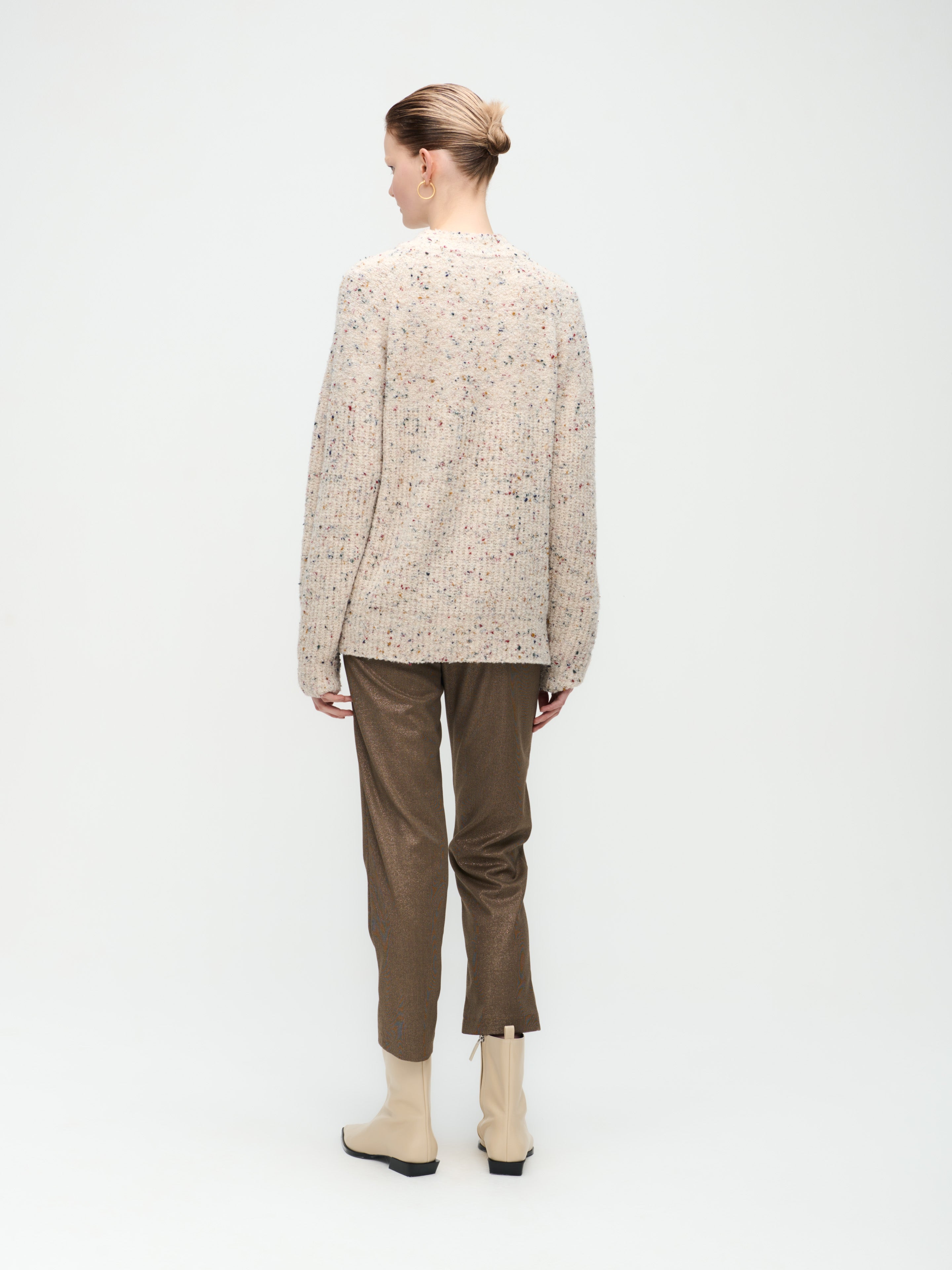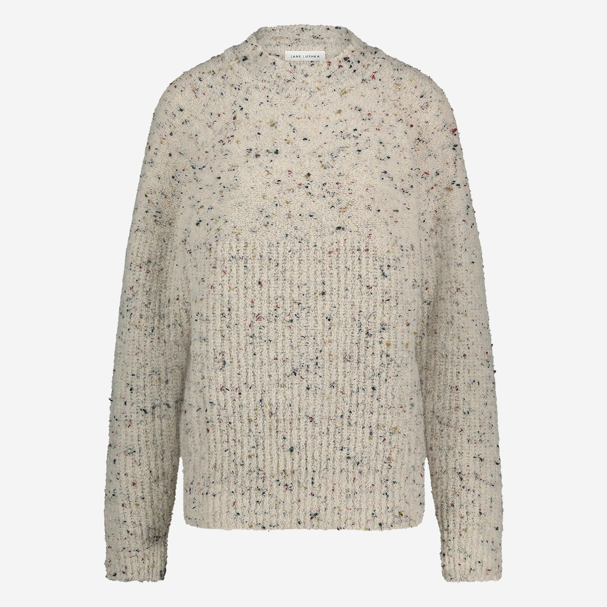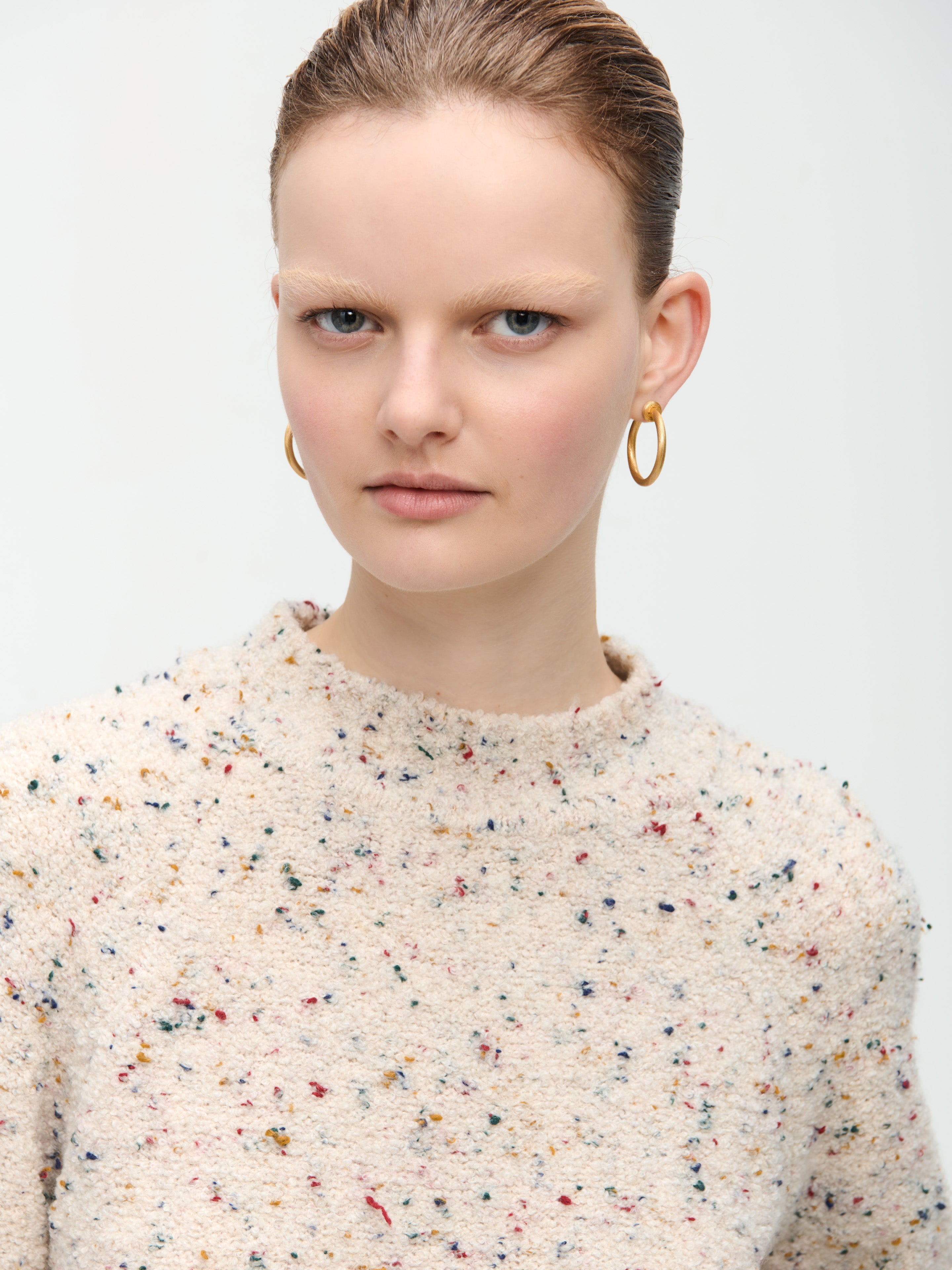 Pullover Errigal Boucle: Abbracciate un'accogliente raffinatezza con il pullover Errigal Boucle. Caratterizzato da una vestibilità ampia e realizzato in tessuto boucle testurizzato, questo pullover offre comfort e stile. La sua silhouette rilassata lo rende perfetto per essere indossato a strati, aggiungendo un tocco di eleganza senza sforzo a qualsiasi abbigliamento. Ideale per rimanere caldi e chic nelle giornate più fresche.