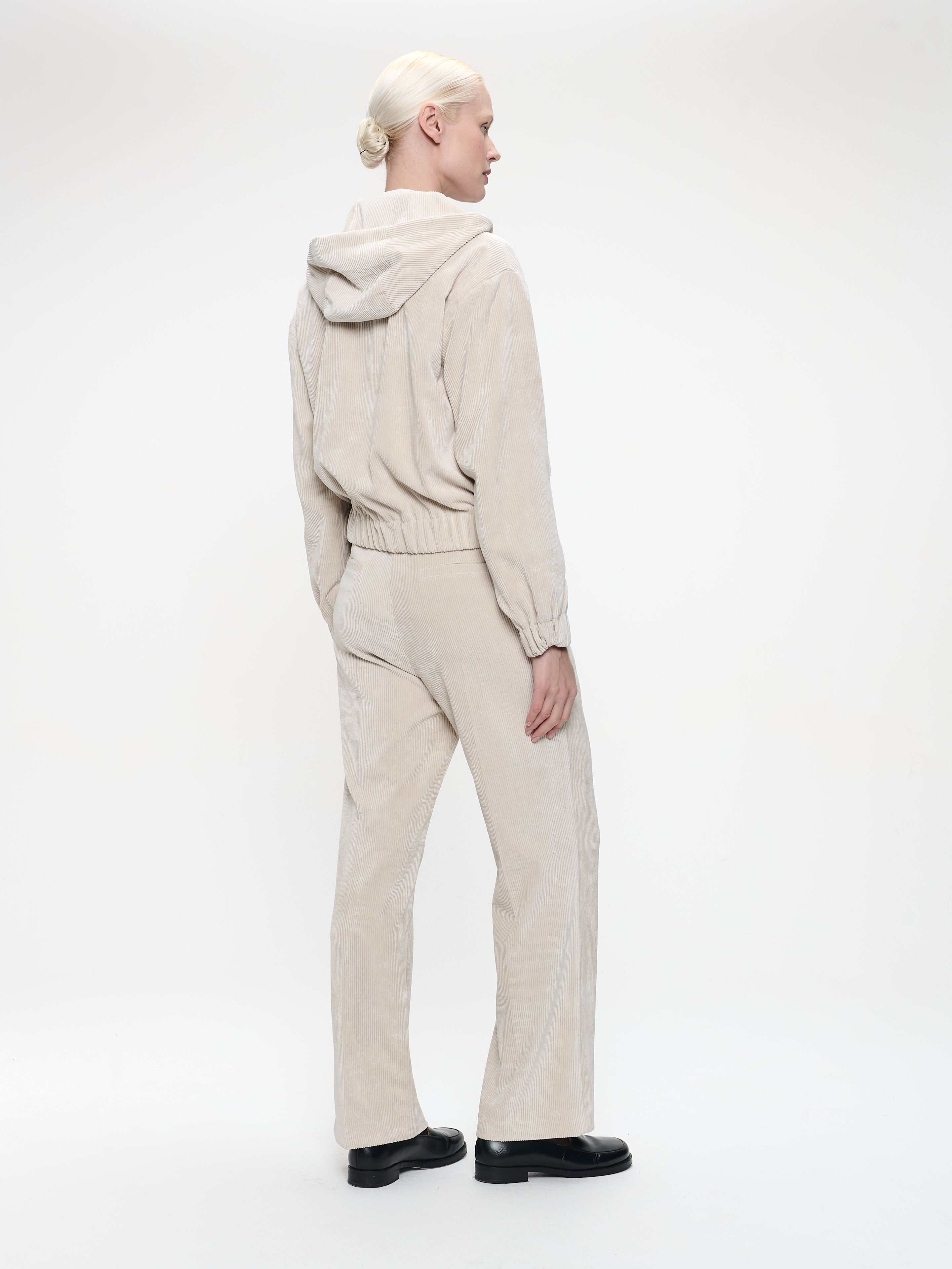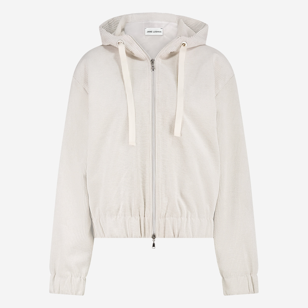 Fresca e discreta senza sforzo, la giacca jeans Golia è un capo versatile che completa qualsiasi look casual. Realizzata in un morbido velluto a coste elasticizzato, presenta una silhouette rilassata, cappuccio con coulisse, chiusura frontale con zip e polsini elasticizzati. Perfetta da abbinare ai pantaloni coordinati o sopra un abito, aggiunge un tocco moderno al guardaroba.