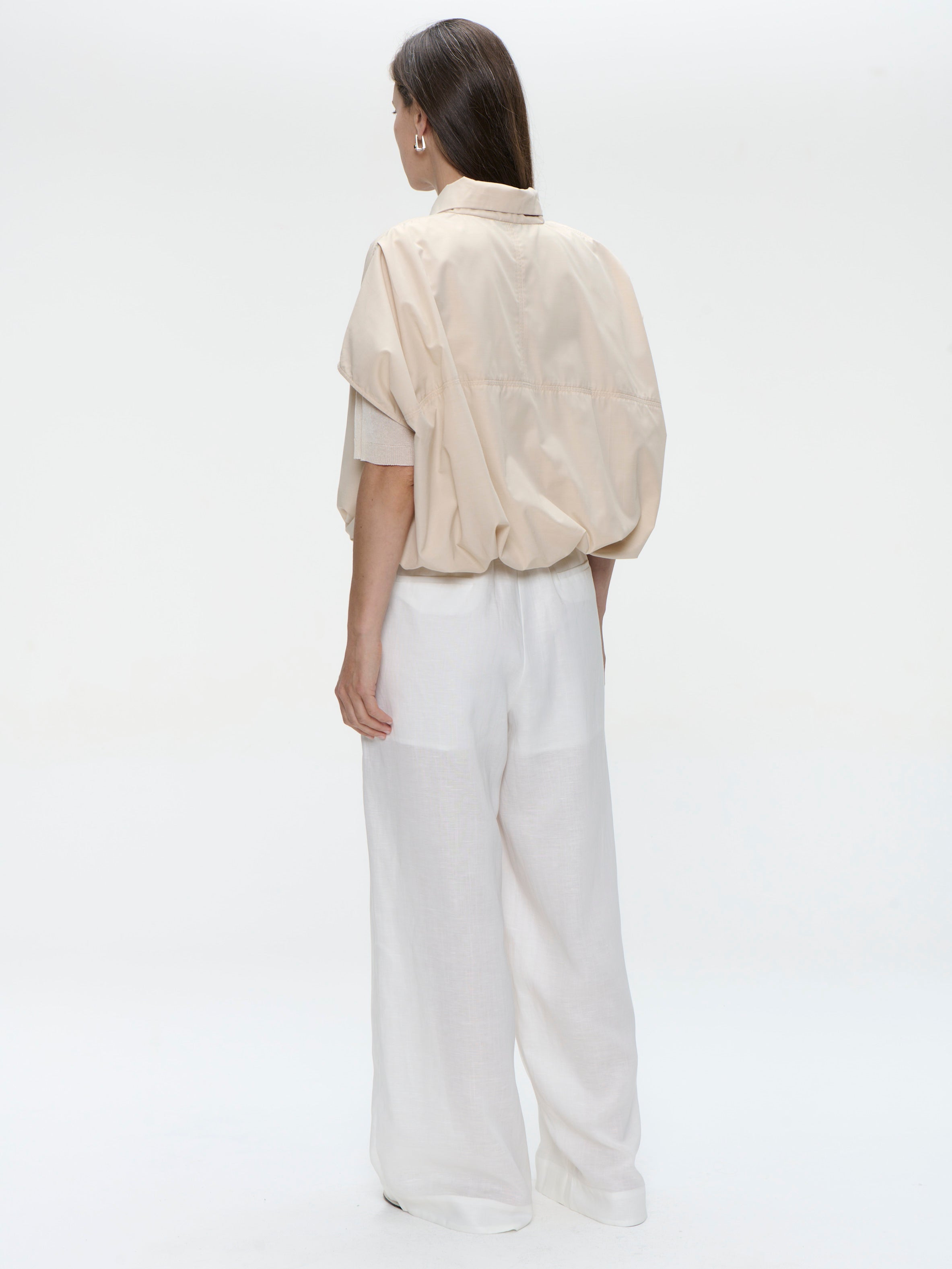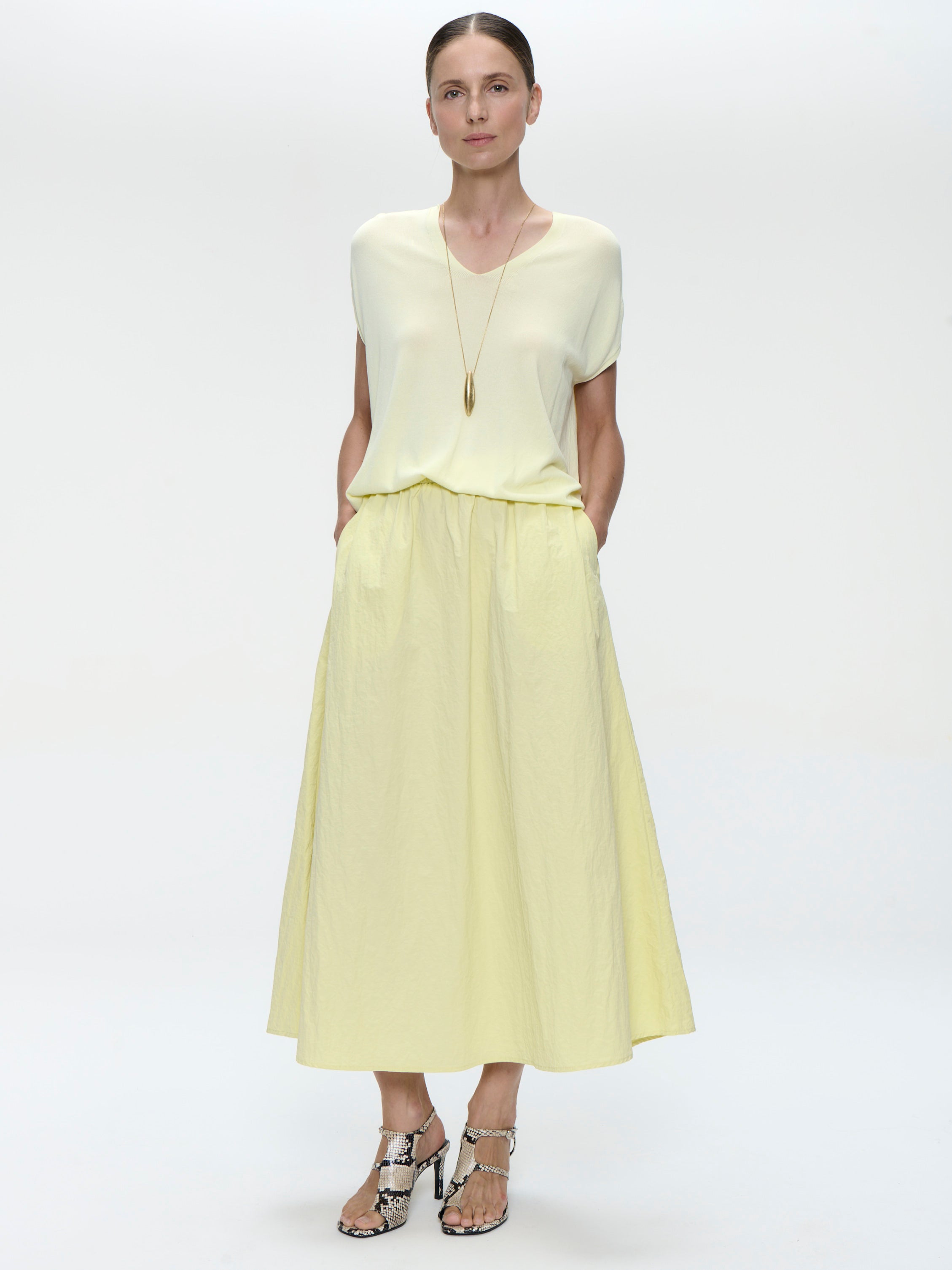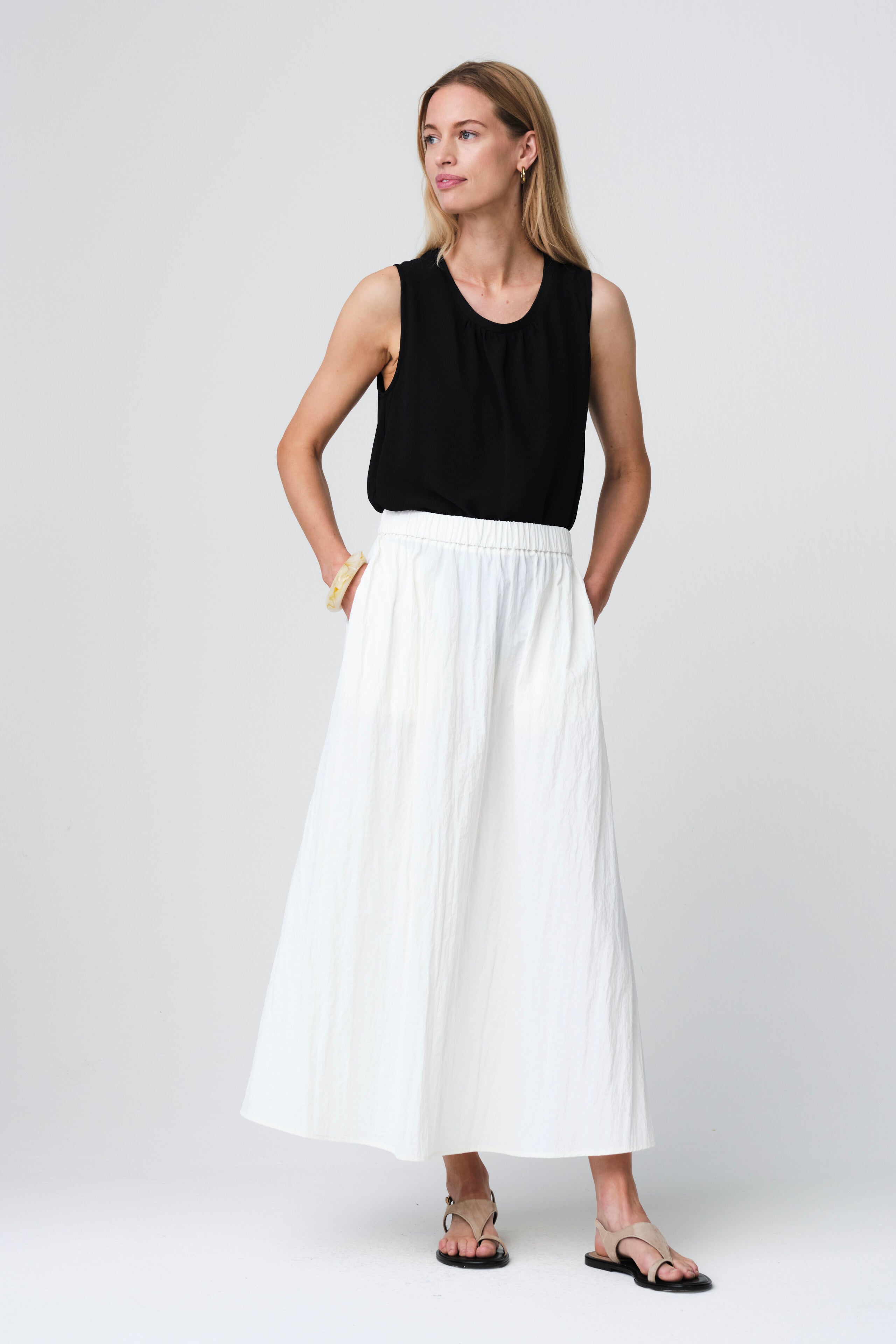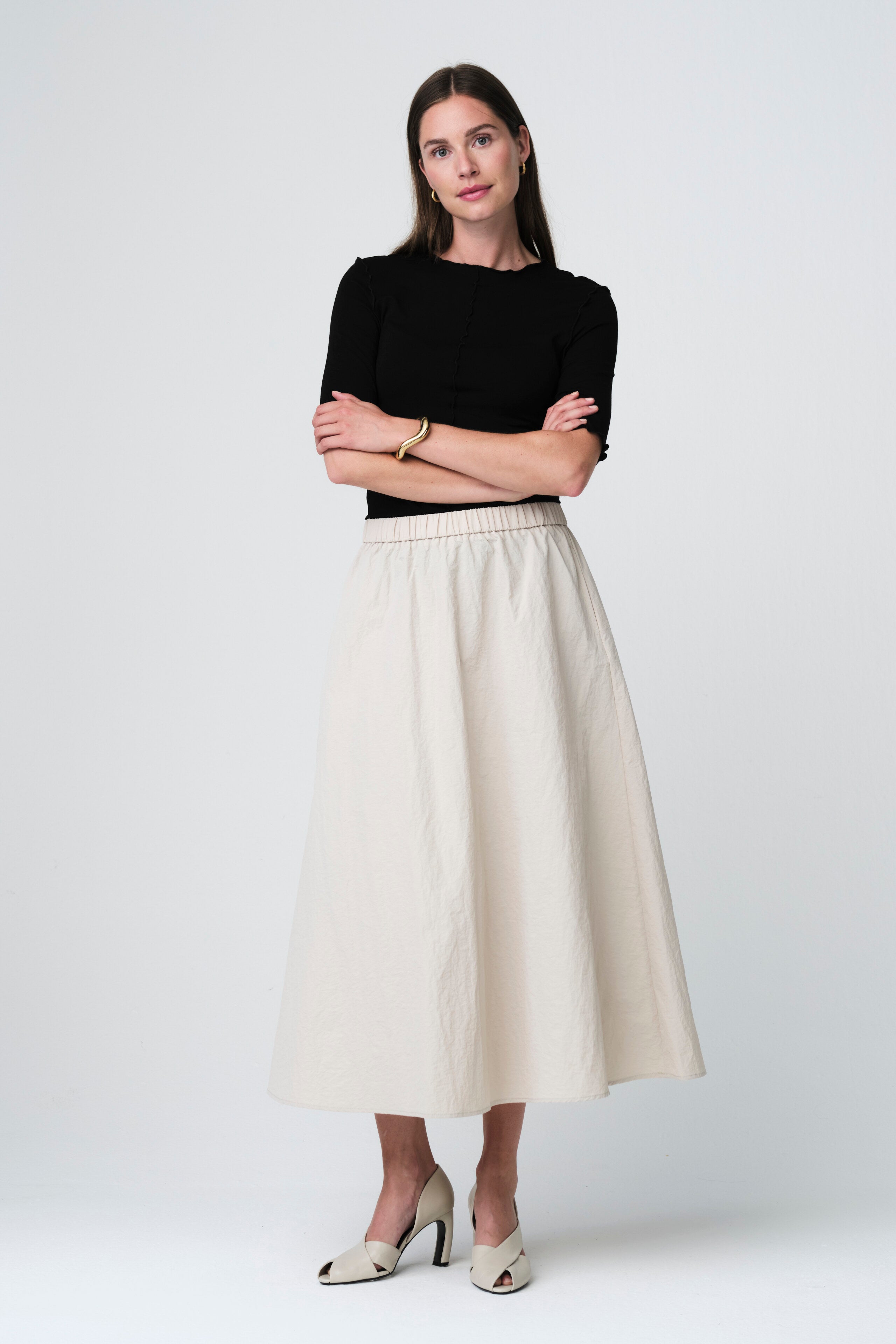 La Haruna Taffeta Skirt dona un’eleganza senza sforzo al guardaroba estivo. Realizzata in taffetà di nylon leggero, segue con fluidità ogni movimento mantenendo una silhouette pulita e strutturata. La cintura elastica garantisce comfort e praticità, rendendola un capo versatile da abbinare sia a top casual che a bluse più eleganti.