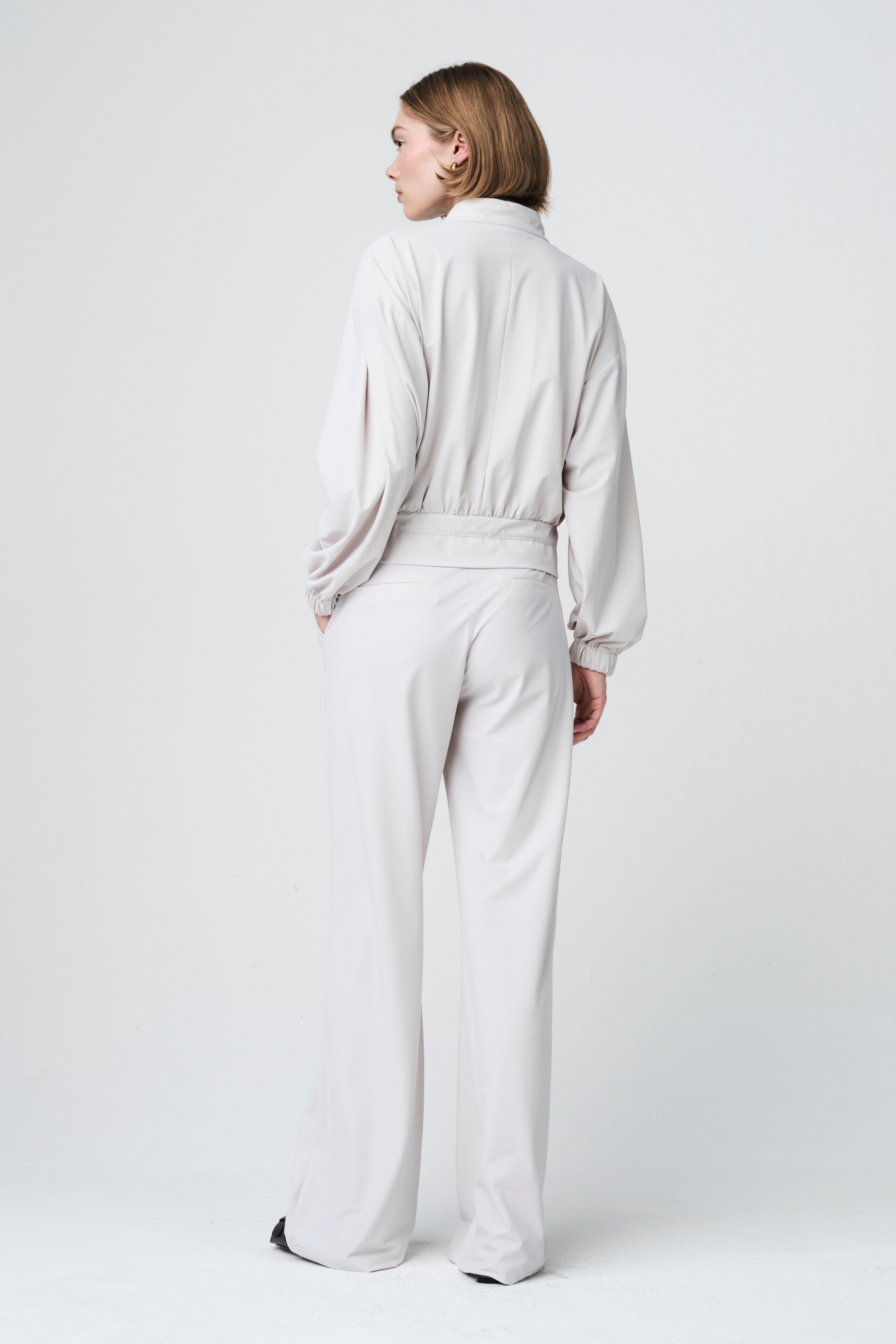 Caratterizzata da un colletto dritto e una chiusura frontale nascosta, unisce dettagli sportivi a una linea sartoriale. Il tessuto elastico e morbido offre comfort e libertà di movimento, mentre la silhouette minimal mantiene uno stile moderno e versatile — perfetta per outfit casual o più eleganti.