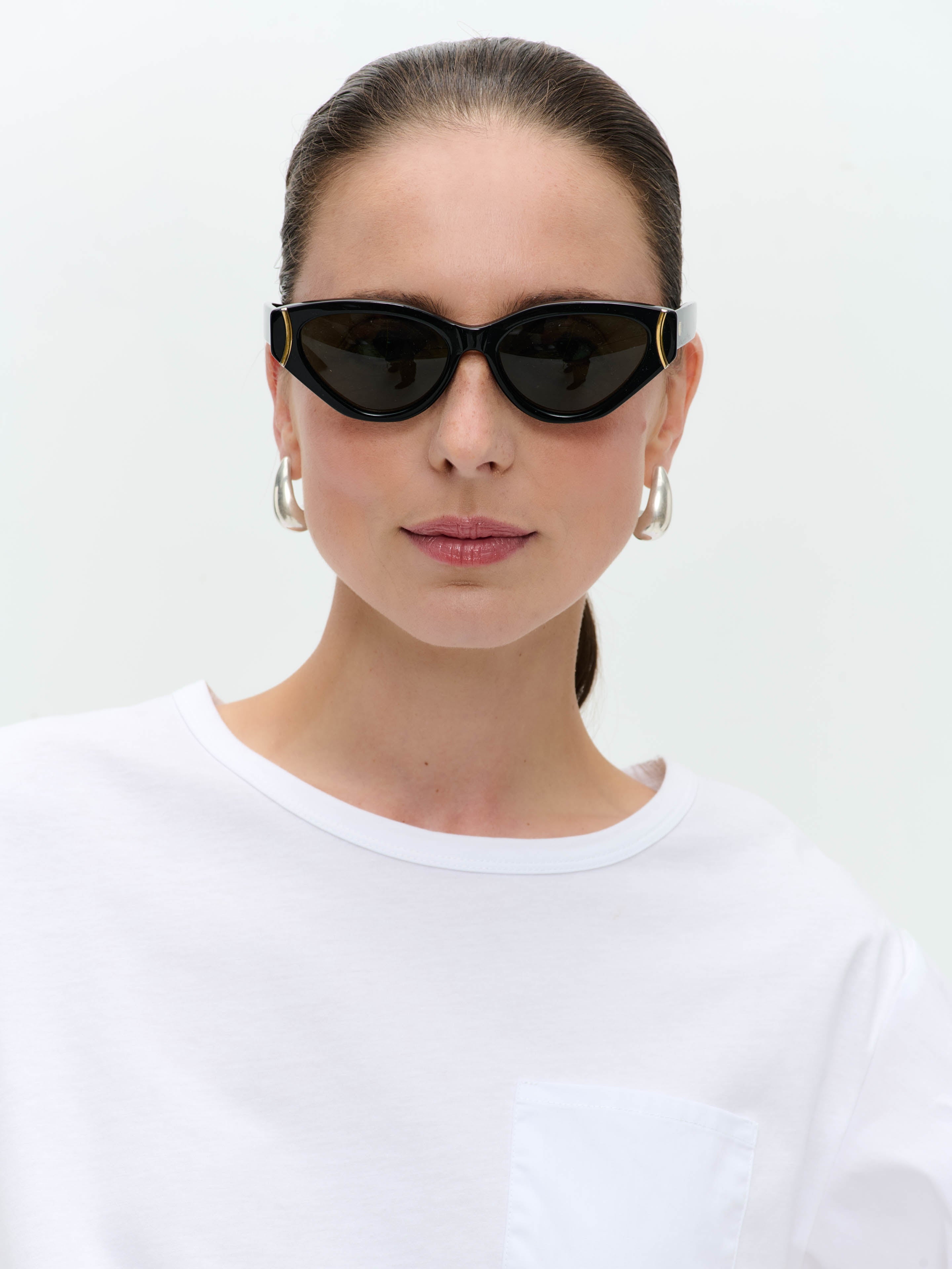 Top in cotone Molly Mix: Ridefinite lo stile casual con il top in cotone Molly Mix. Questo capo moderno combina il morbido cotone con accenti strutturati in popeline, creando un mix unico di comfort e raffinatezza. Con le sue maniche oversize, il dettaglio della tasca sul petto e la silhouette squadrata, questo top aggiunge un tocco contemporaneo al vostro guardaroba quotidiano. Abbinatelo a pantaloni o jeans sartoriali per un look elegante e rilassato.