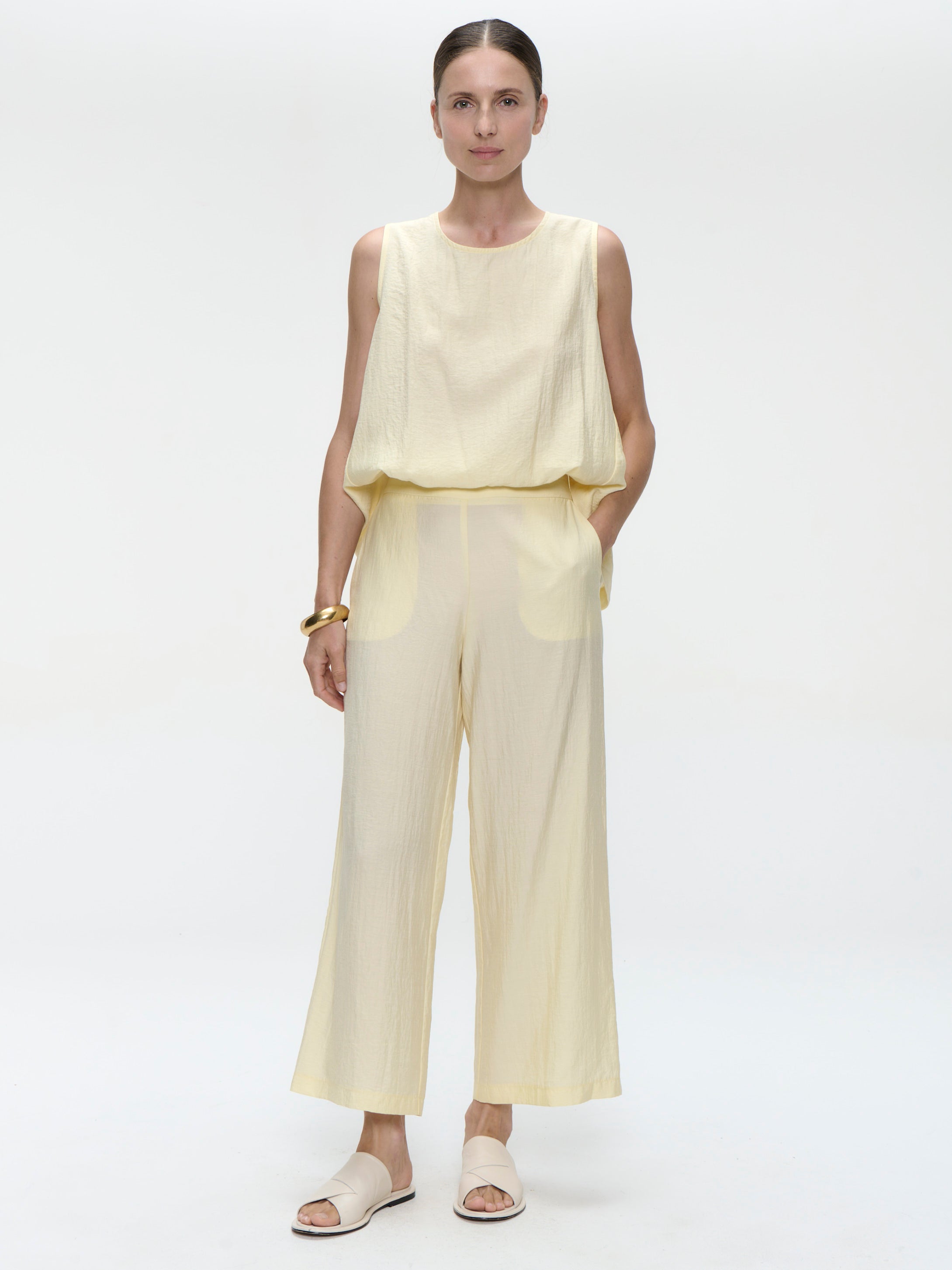 I Pants Viscose 23202 offrono una silhouette rilassata ma elegante, realizzati in 100% viscosa. Il tessuto leggero e fluido dona un movimento naturale alla gamba larga e dritta. Morbidi, freschi e raffinati — perfetti per giornate calde o per un’eleganza quotidiana. Da abbinare ai top coordinati per un look completo.