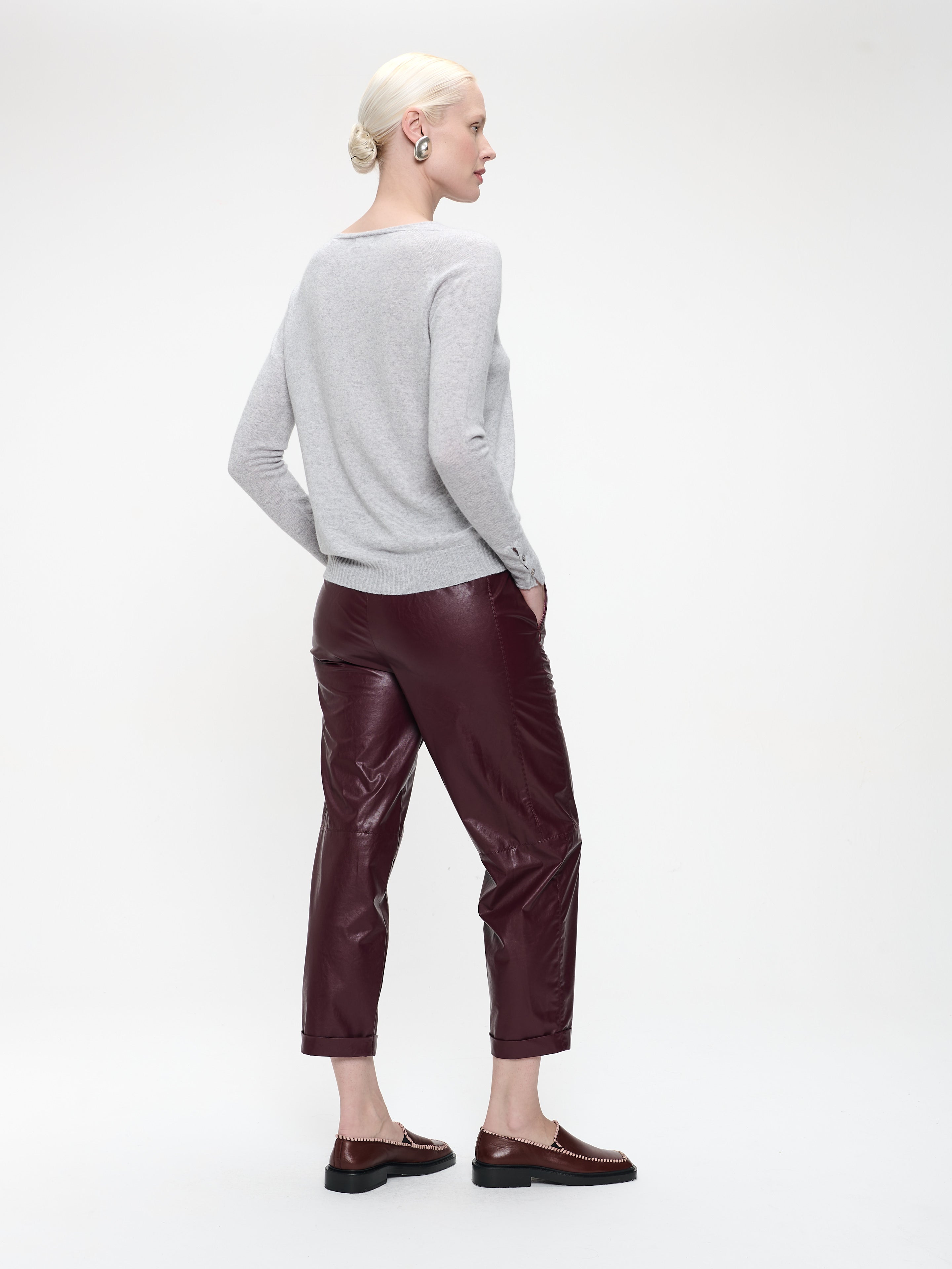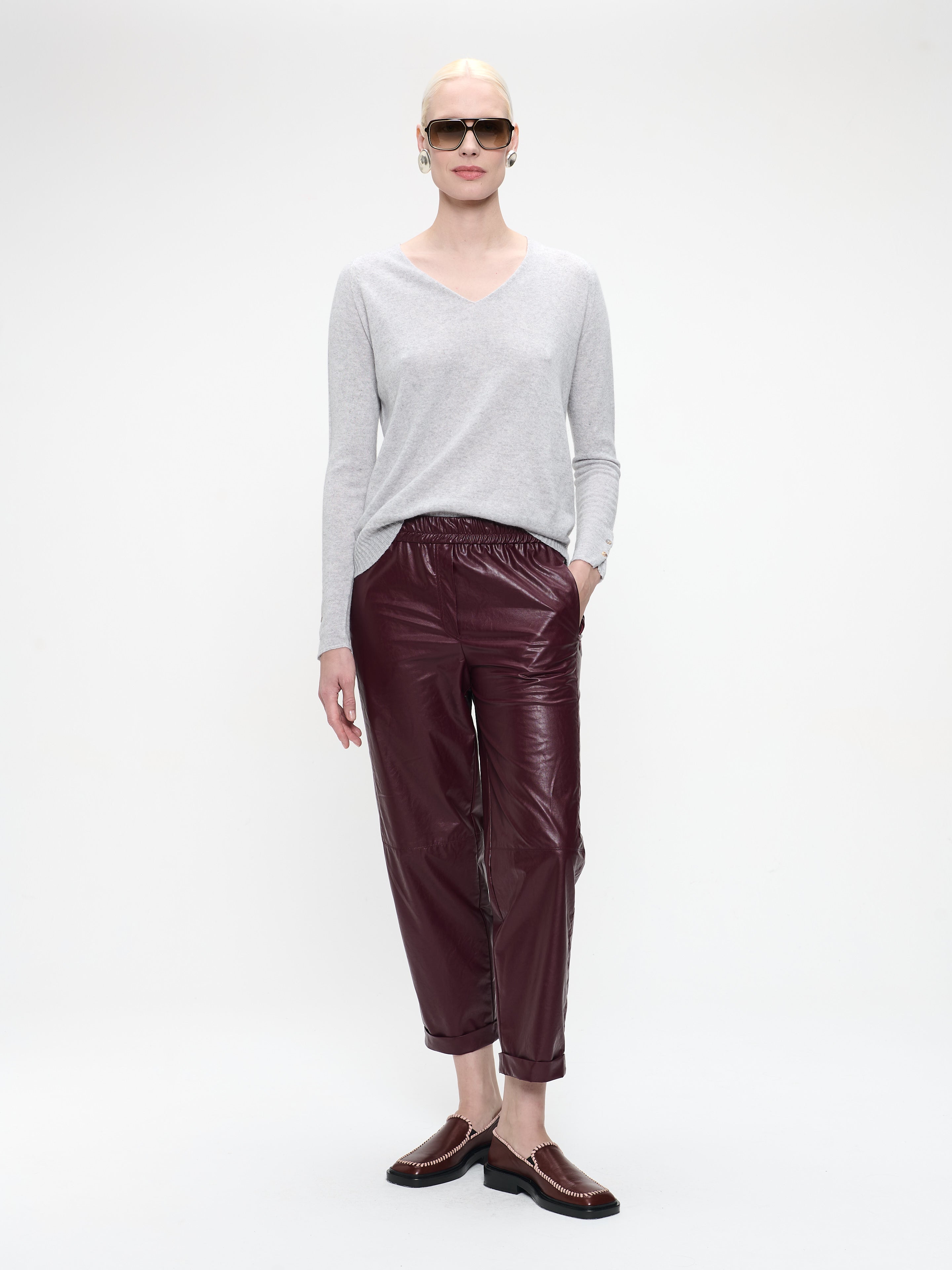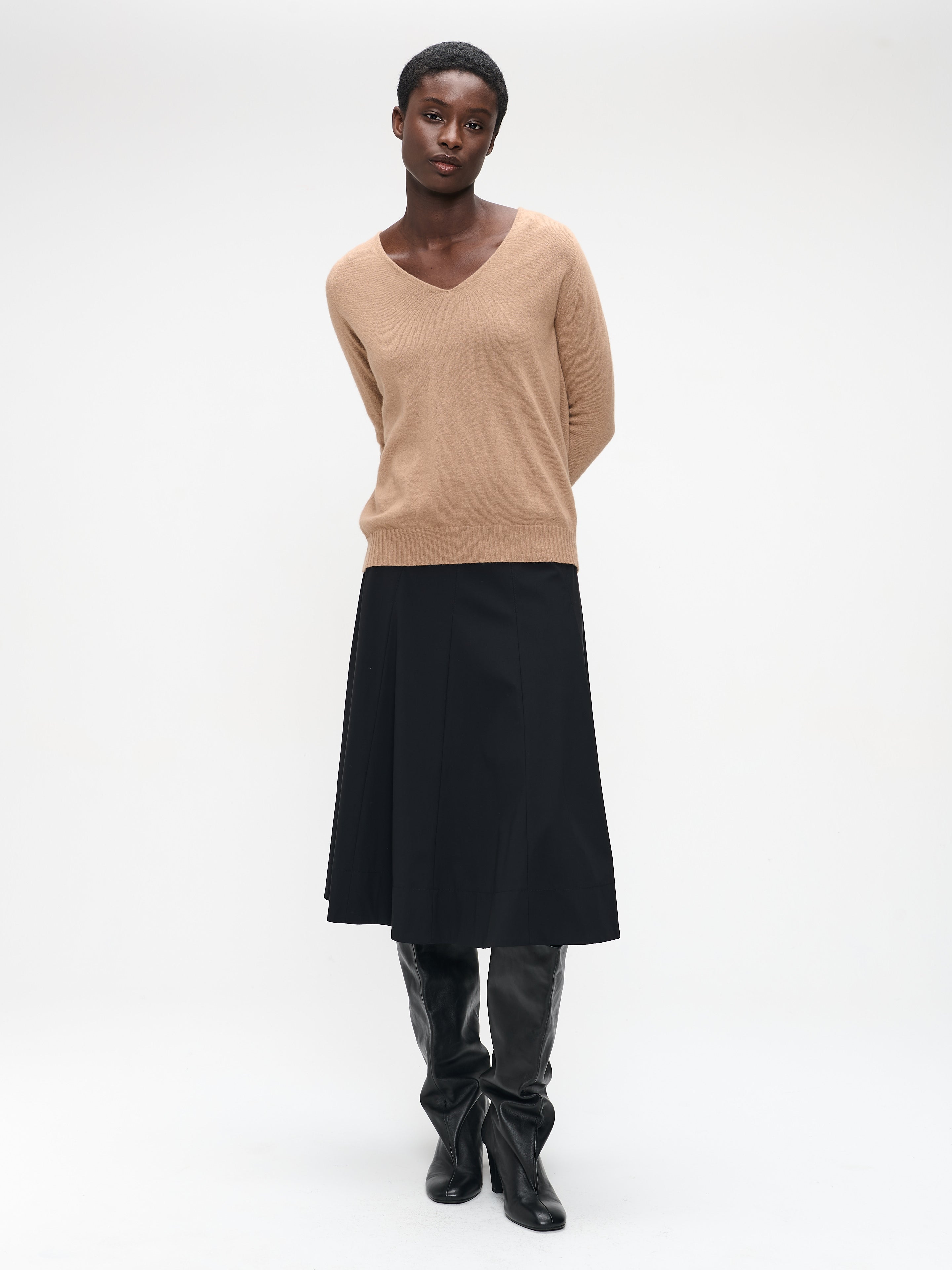 Realizzato con un pregiato mix di lana merino, viscosa, poliammide e cashmere, questo maglione morbido offre calore ed eleganza. Il suo design minimal con scollo a V lo rende un capo versatile da indossare da solo o a strati.