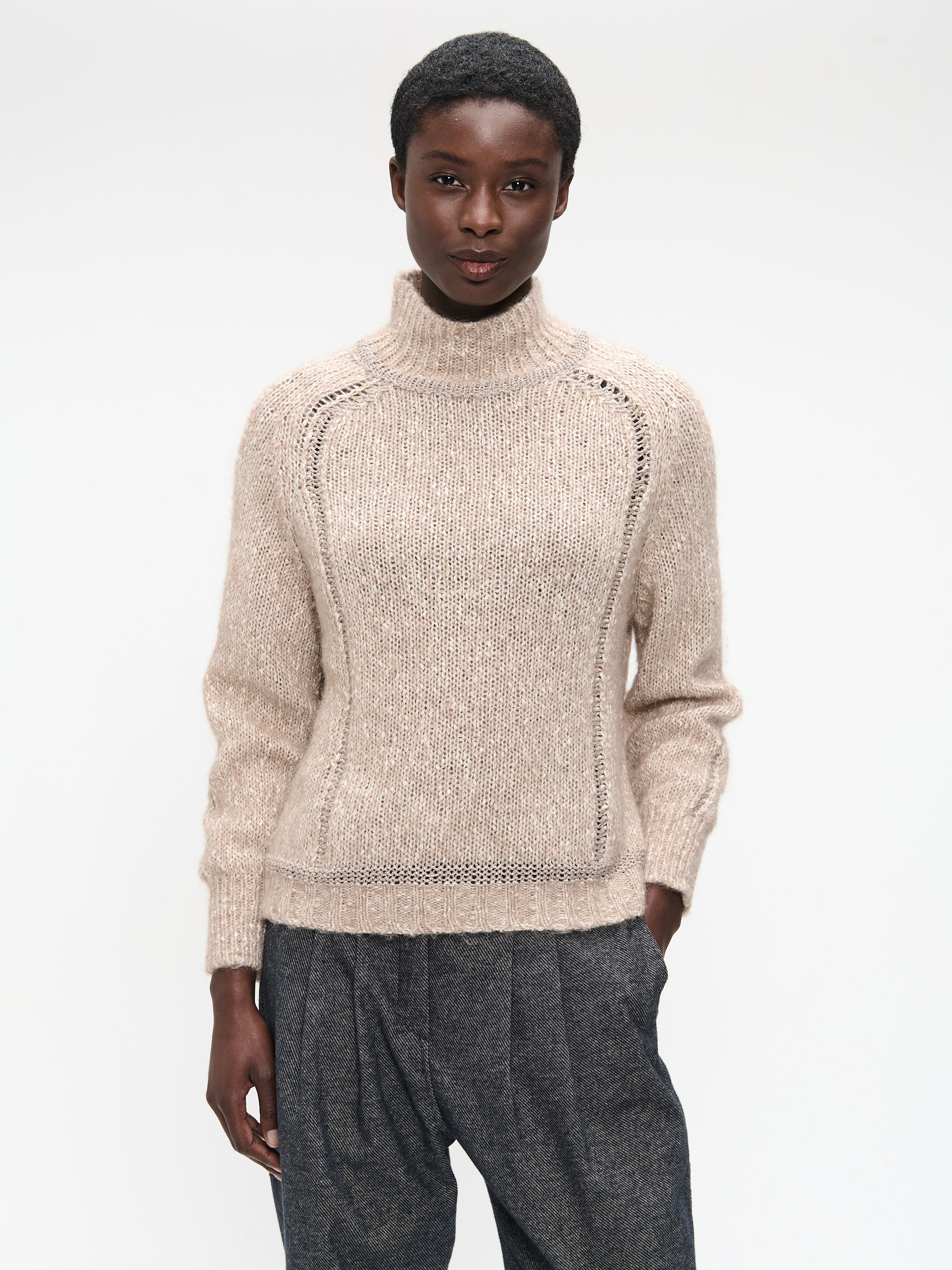 Douceur et sophistication – le pull H25139 est la pièce indispensable pour l’hiver, idéale pour les superpositions. Son col montant et sa coupe décontractée assurent confort et élégance intemporelle.