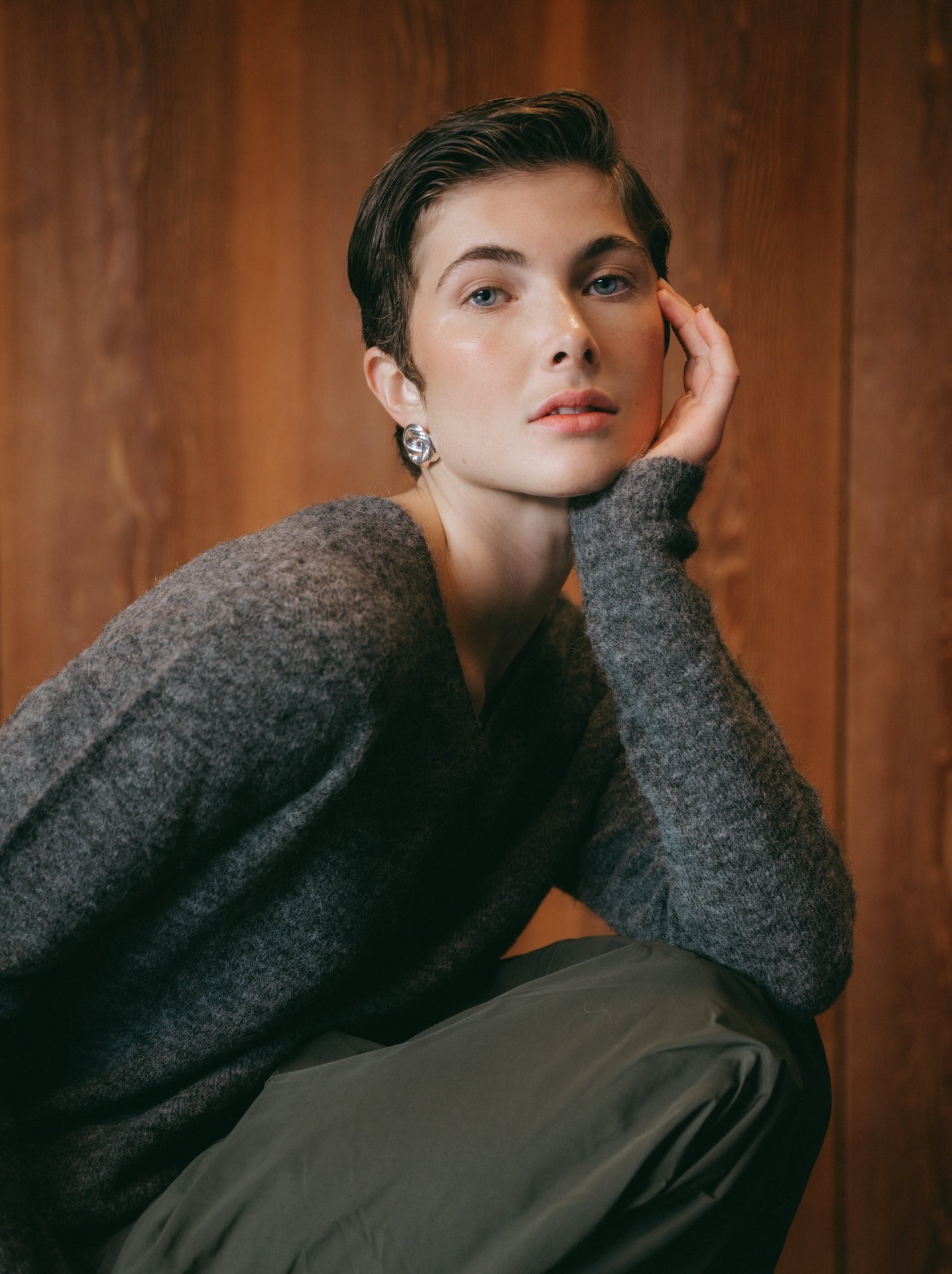 Il Pullover H24420 unisce eleganza sobria e funzionalità accogliente. Realizzato con un morbido scollo a V e una silhouette rilassata, questo pullover offre una vestibilità fluida che valorizza ogni look. La tonalità grigio melange aggiunge profondità discreta, perfetta sia per l’abbinamento a strati che per essere indossato da solo. La texture soffice e le maniche lunghe ne aumentano il comfort, rendendolo un capo essenziale per i mesi più freddi.