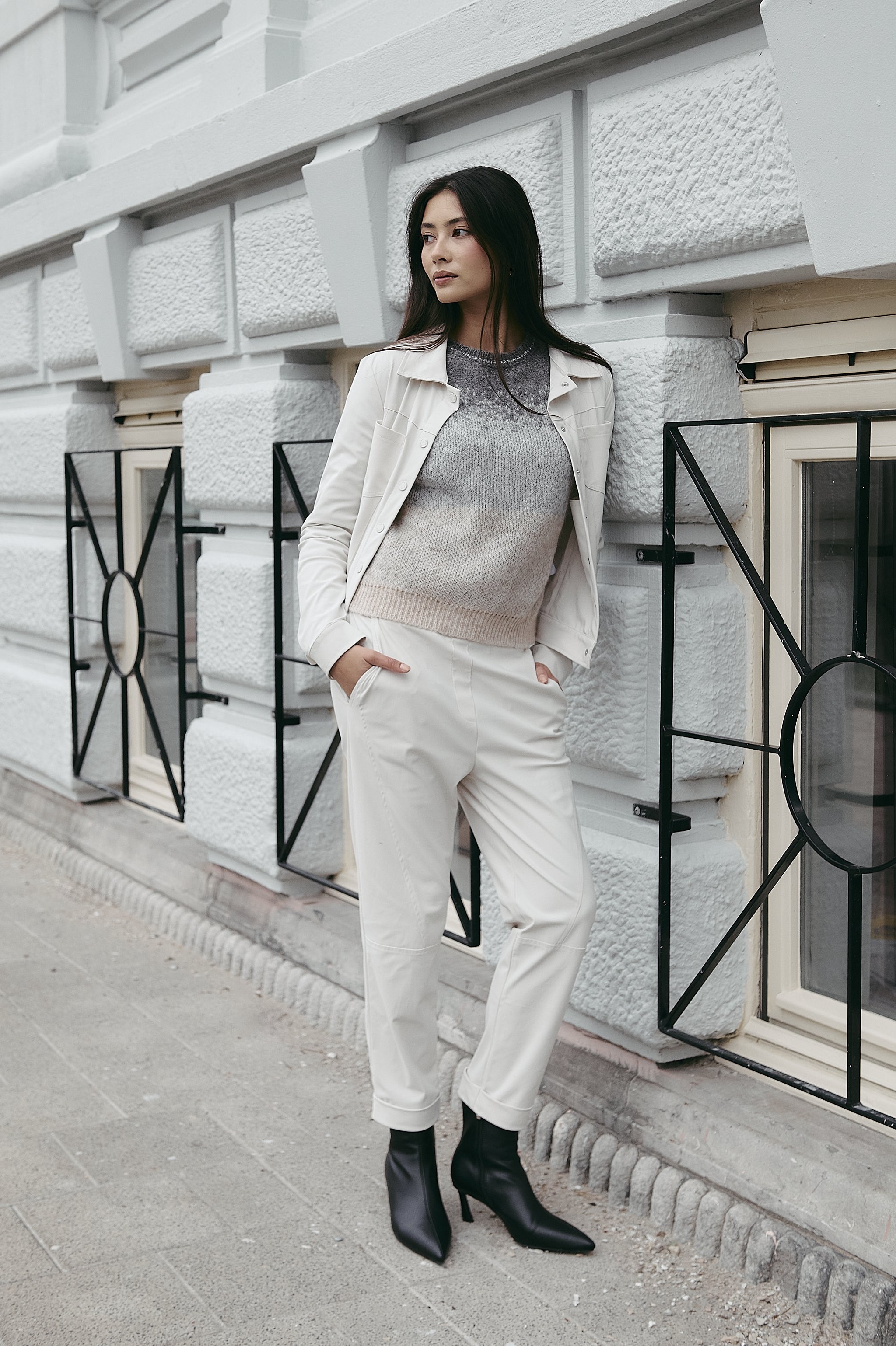 La giacca bomber Ripasso in satin di Jane Lushka combina un’anima sportiva con eleganza contemporanea. Realizzata in Italia in satin morbido e luminoso, offre leggerezza e comfort raffinato. Presenta chiusura con zip, polsini e fondo elastici e una fodera liscia per una vestibilità perfetta. Il design pulito e minimalista la rende un capo versatile, perfetto sia con pantaloni sartoriali che con look casual.