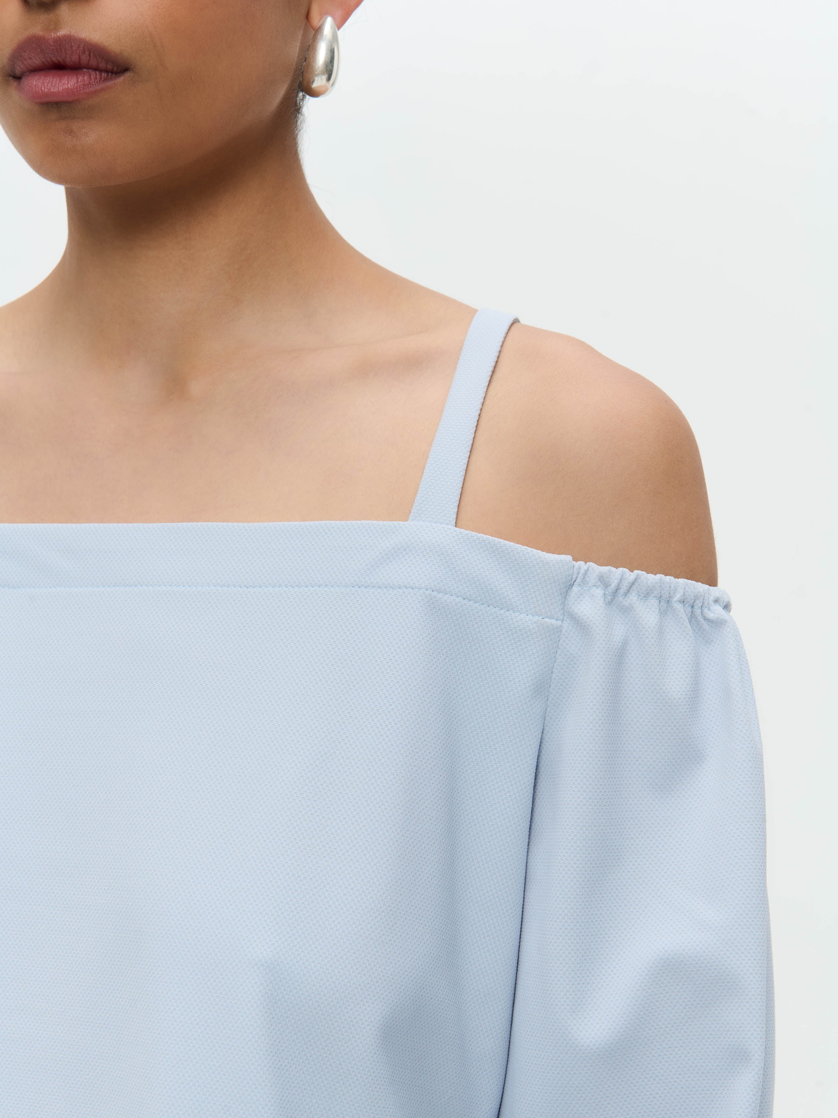 Il top Samira è realizzato in leggero jersey con struttura high-tech e offre un design contemporaneo ed elegante. Caratterizzato da delicate spalline e maniche lunghe off-shoulder, questo top unisce un tocco femminile a una moderna raffinatezza. Il tessuto antipiega, traspirante e di facile manutenzione garantisce comfort e praticità, rendendolo perfetto sia per le occasioni casual che per quelle più eleganti.