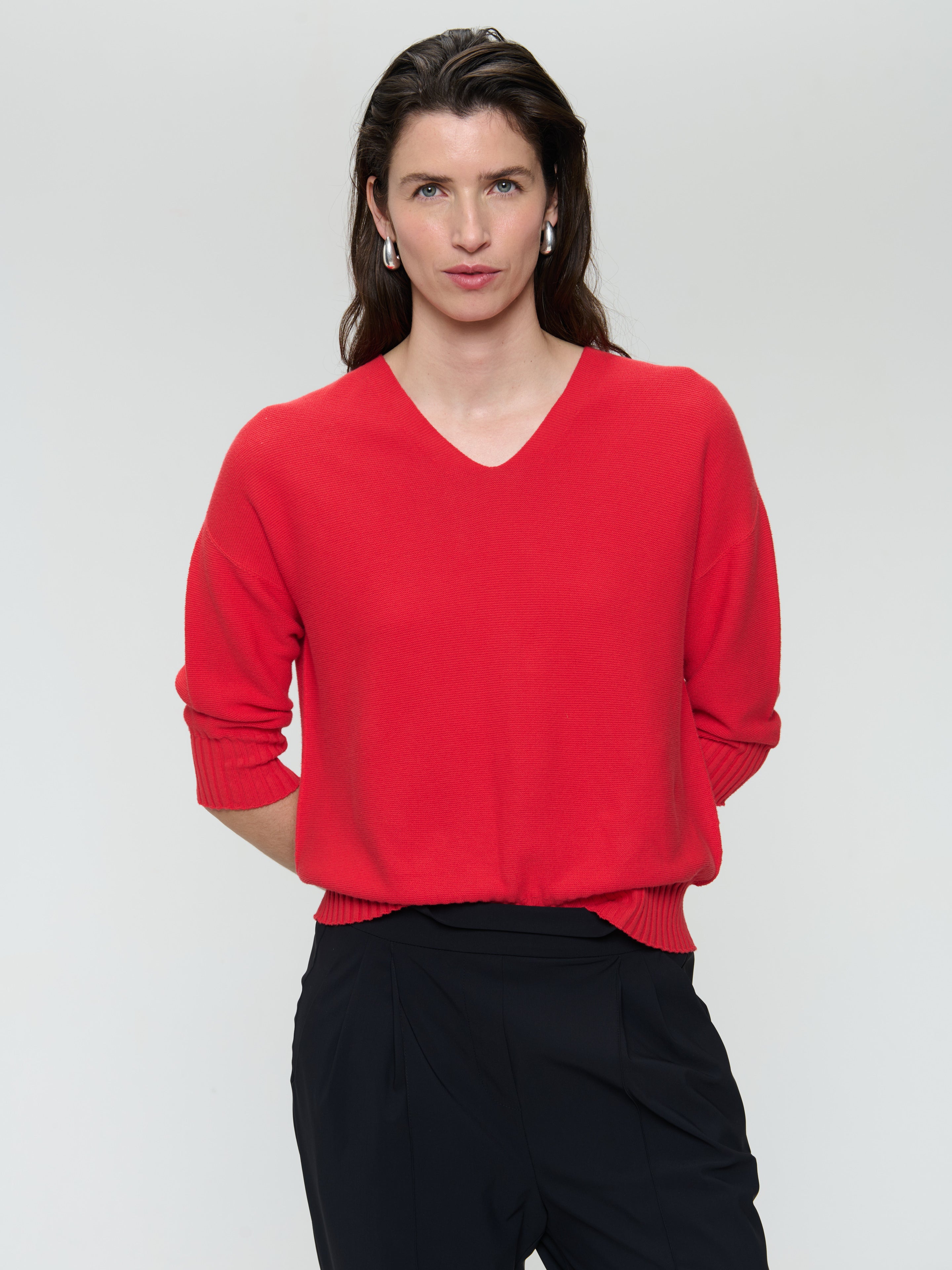 Il pullover 317 in cotone senza cuciture è un capo sofisticato della collezione Best Basic. Il suo design senza cuciture assicura una vestibilità morbida ed elegante, rendendolo una scelta versatile per qualsiasi guardaroba. Realizzato in cotone pregiato, questo pullover offre un comfort leggero e un tocco morbido. Caratterizzato da un'invitante scollatura a V e da una silhouette leggermente aderente, è perfetto per essere indossato a strati o come capo a sé stante. L'orlo e le maniche a coste aggiungono una finitura raffinata, rendendo questo pullover una scelta senza tempo per look casual e raffinati.