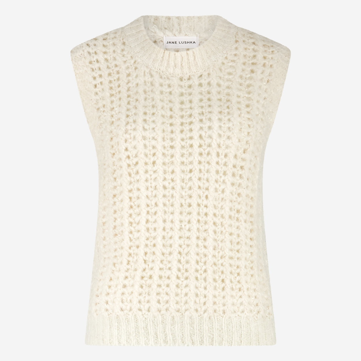 Il Shiny Vest 1008 di Jane Lushka è un capo leggero e traspirante, perfetto per look a strati nelle mezze stagioni. La struttura a maglia aperta e il design senza maniche conferiscono un tocco moderno, mentre la morbidezza della lana e della viscosa assicura comfort per tutto il giorno. Indossalo da solo o sopra una camicetta per un look chic e contemporaneo.