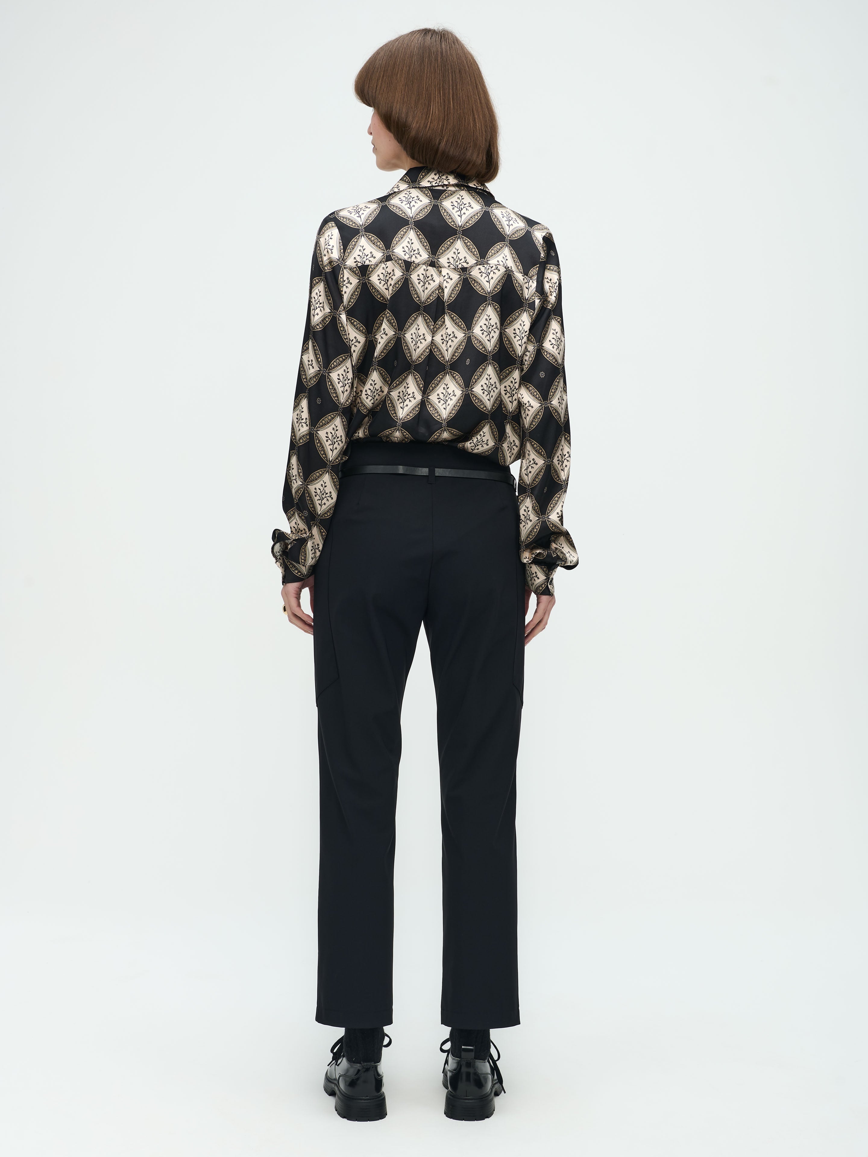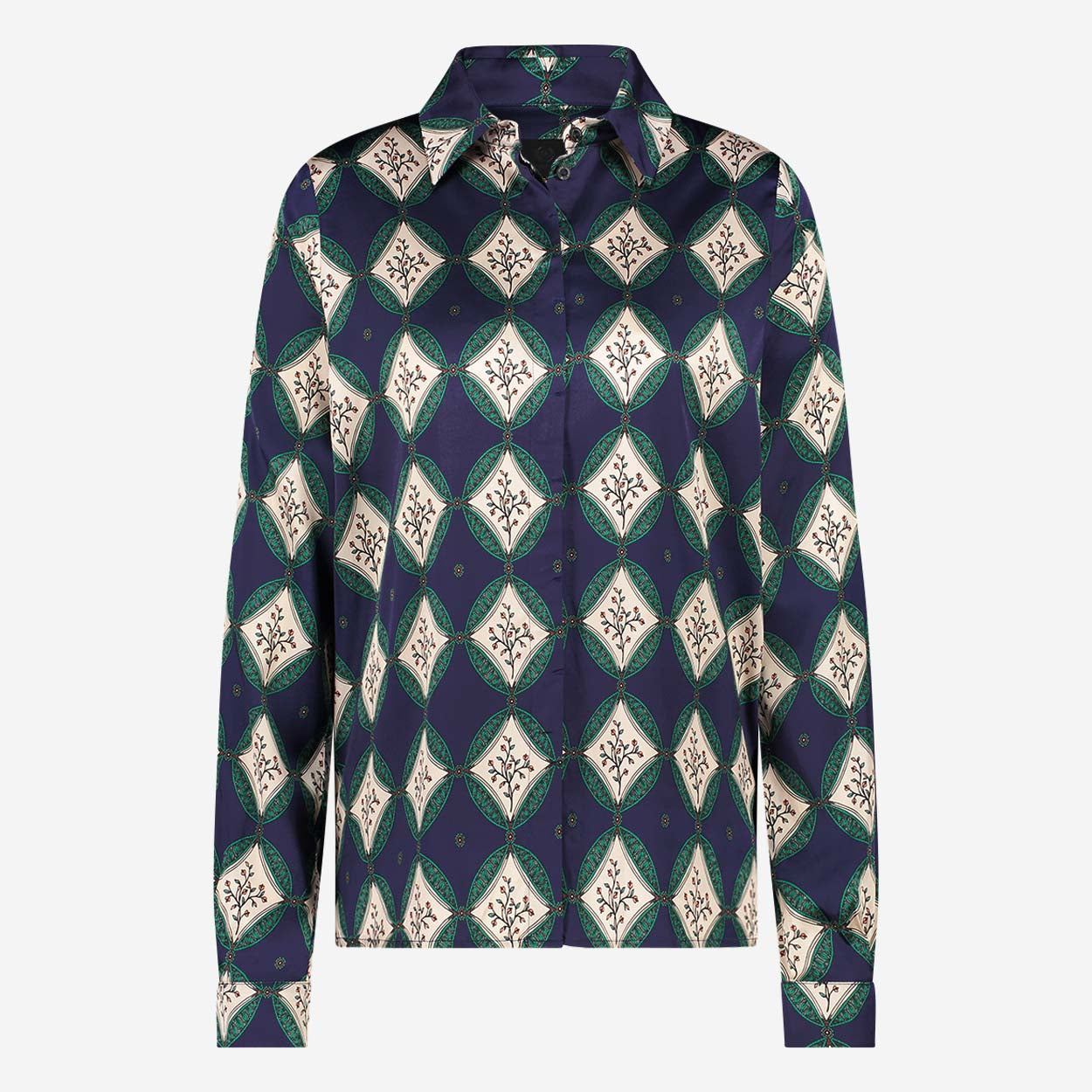 SisiN Camicetta in seta e viscosa stampata: Concedetevi il lusso della blusa SisiN, realizzata in un misto di seta e viscosa per una sensazione di morbidezza e leggerezza. Caratterizzata da una stampa sottile ed elegante, questa blusa offre una forma classica e raffinata, perfetta per aggiungere un tocco di raffinatezza al vostro guardaroba. Ideale sia per ambienti casual che formali.