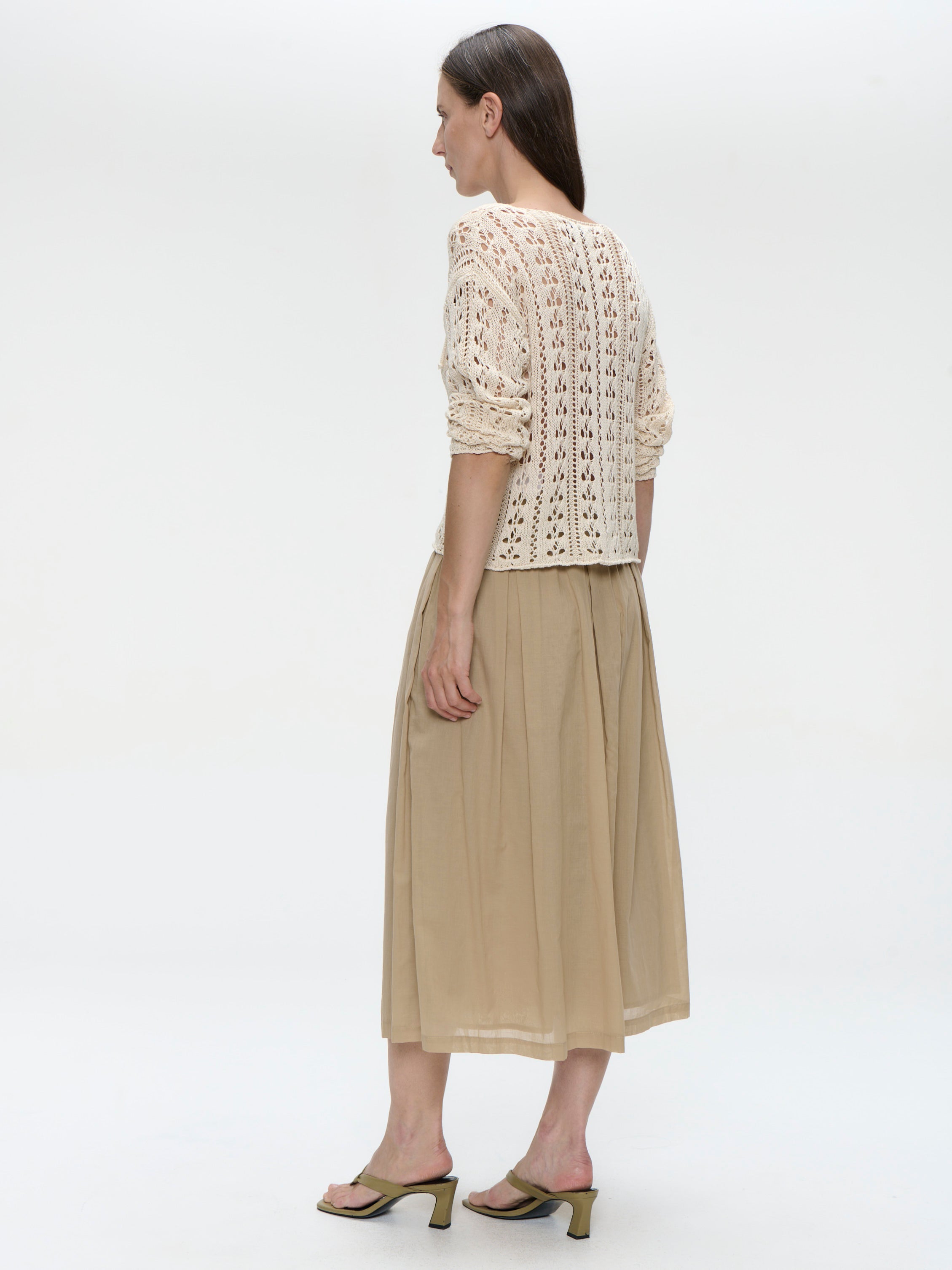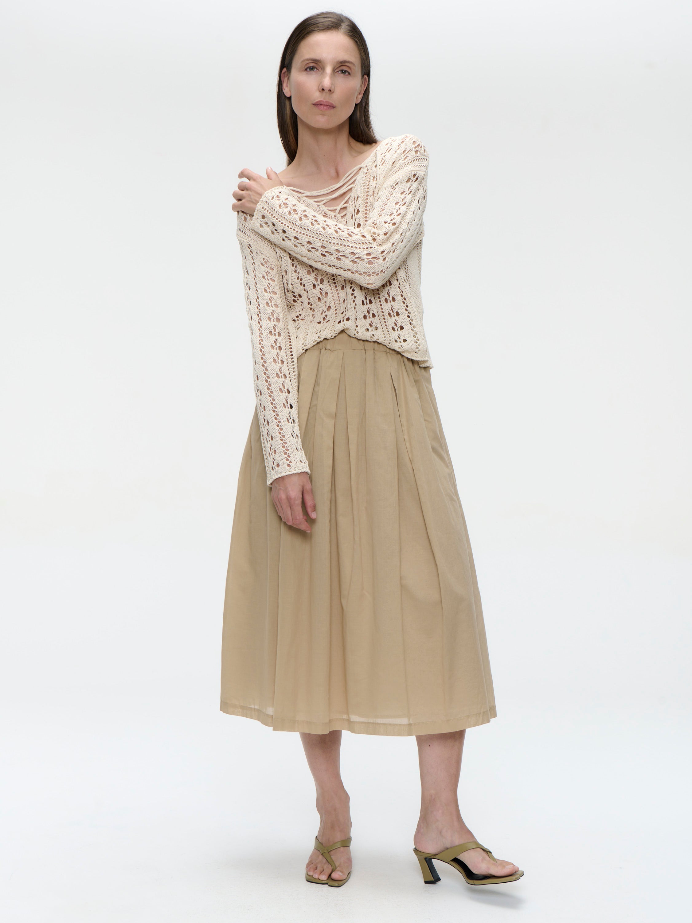 Il Summer Pullover cattura l’essenza di uno stile stagionale senza sforzo. Realizzato in Europa in 100% acrilico leggero, questo modello arioso presenta intricati motivi ispirati all’uncinetto e una silhouette rilassata. L’ampia scollatura con delicati laccetti aggiunge un tocco femminile, mentre la struttura lo rende perfetto da indossare sopra top o abiti estivi.
